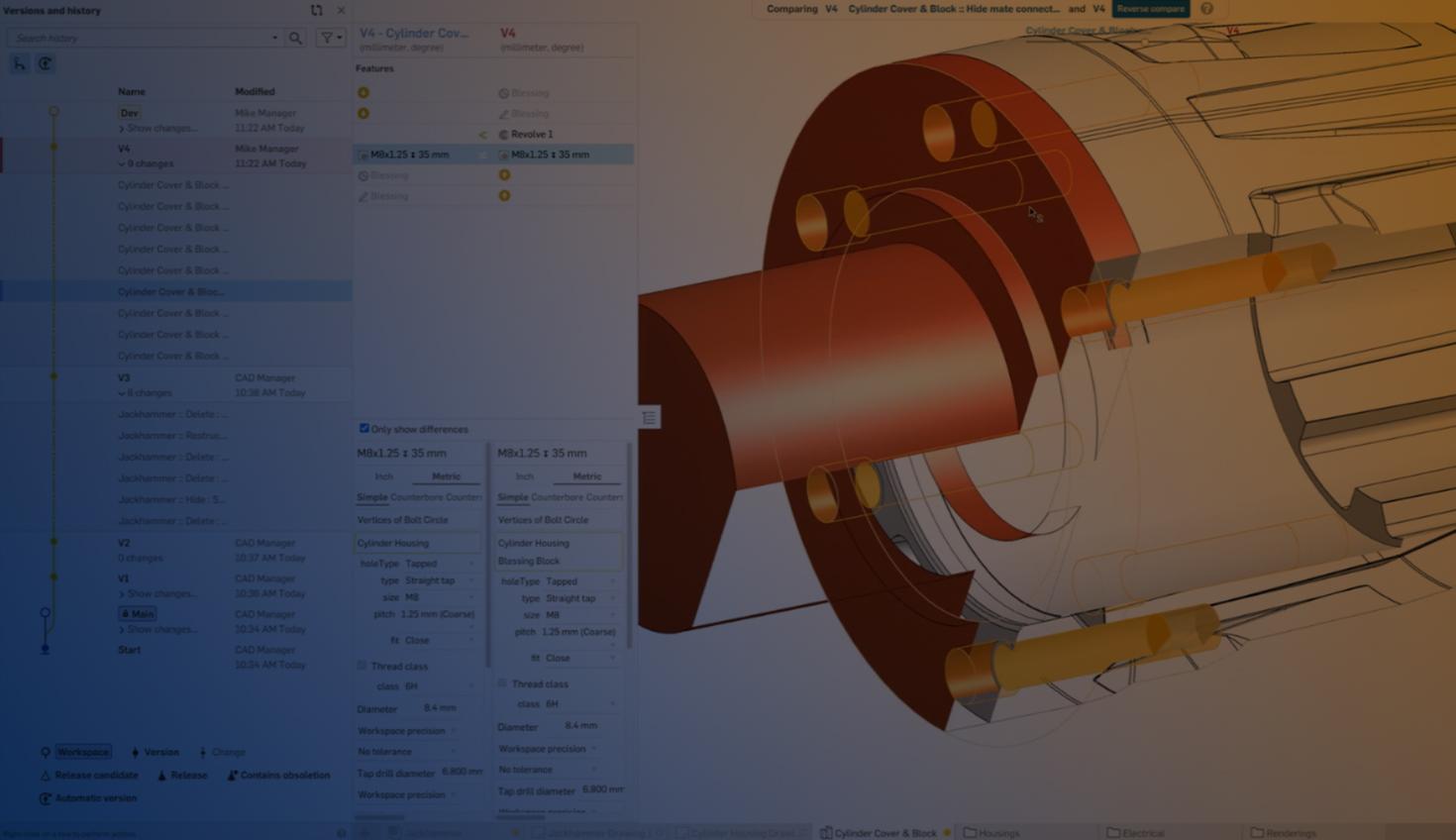 PTC’s Onshape makes this easy with its built-in product data management (PDM) system. It offers a modern, cloud-native solution that ensures seamless collaboration and version control.