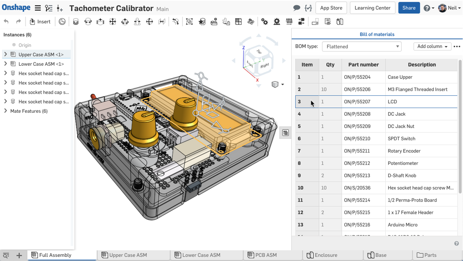 Onshape’s simultaneous Bill of Materials enables real-time data editing.
