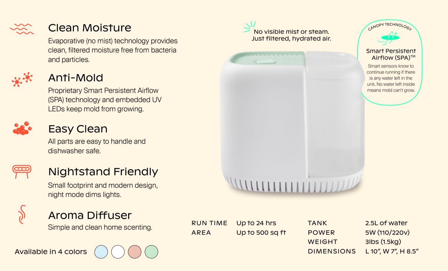 To learn more about the Canopy humidifer, visit the Canopy website.