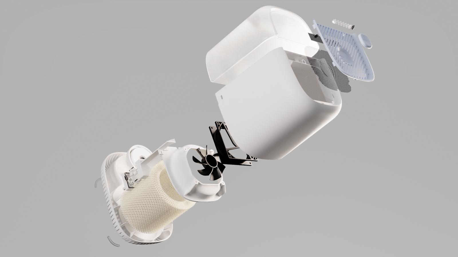 An exploded view of the Canopy humidifier, which is the first product in its class to eliminate mold and be dishwasher-safe.