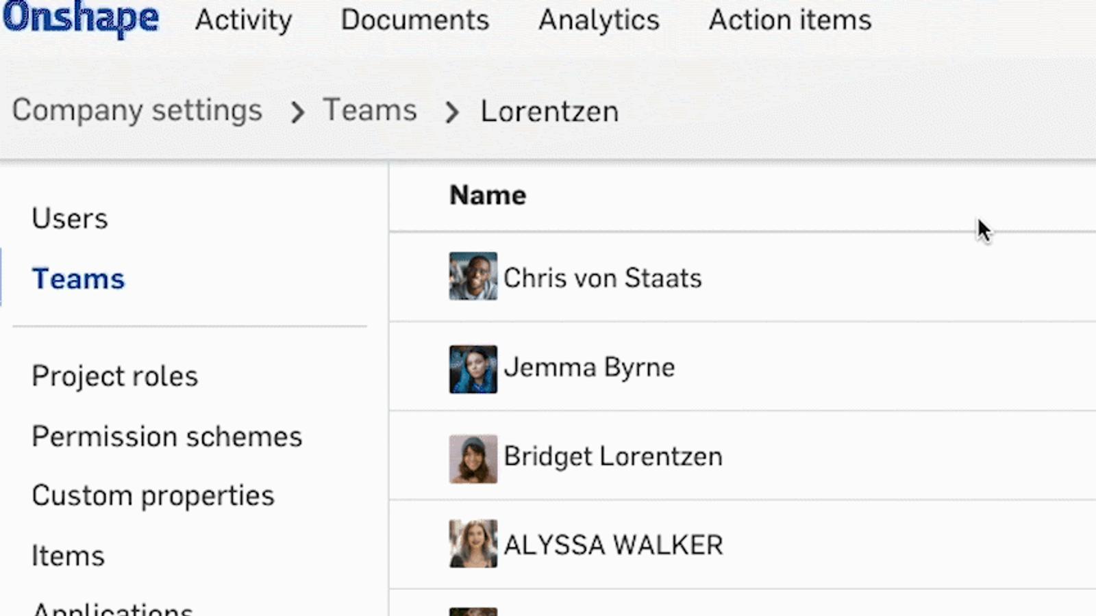Onshape Documents are ultimately owned by administrators, who have both control and visibility. Additionally, account instructors/administrators can assign roles and grant access to view, edit, or share Documents based on those roles. Colleagues can have complete access to platform analytics, teaching assistants can edit and share Documents, and permissions for all students can be granted or revoked instantly.