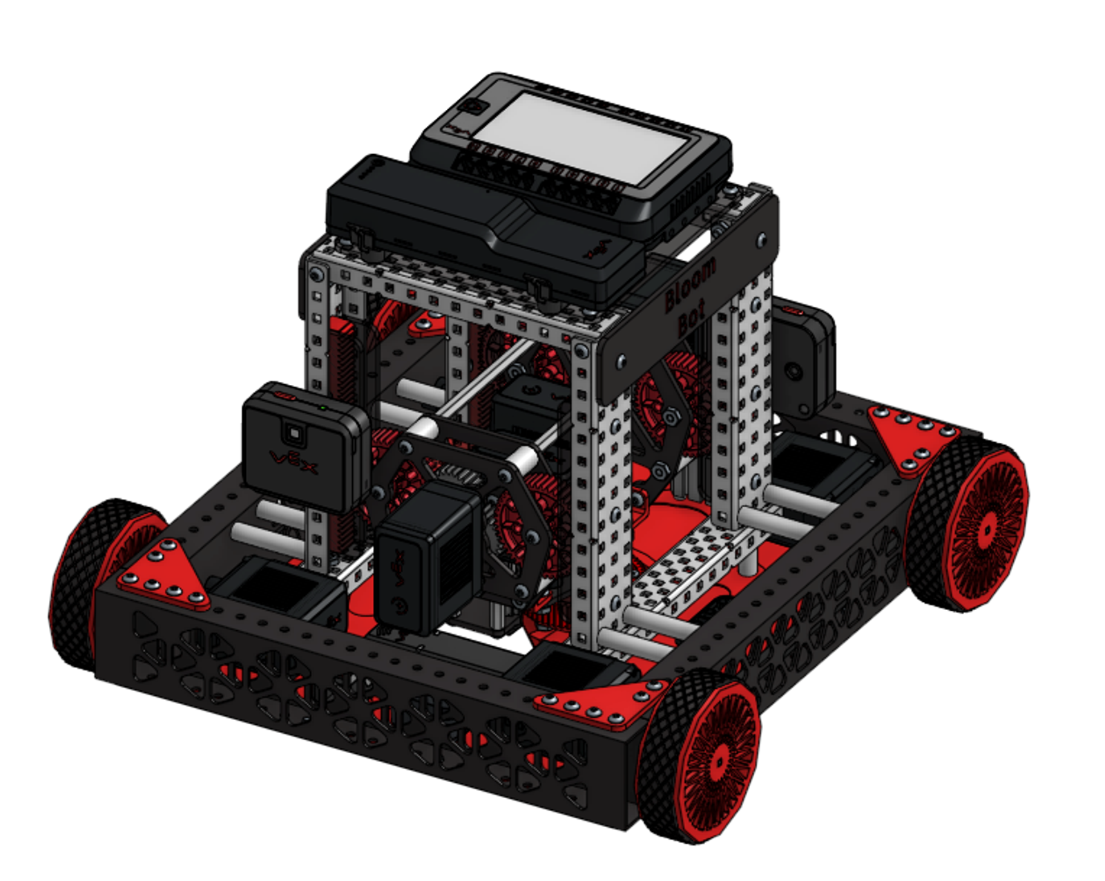 When discussing their design process, the team shared that, “The most difficult part of the robot to design was the carriage as we needed to fit two motors and several gear mechanisms in a tight space.