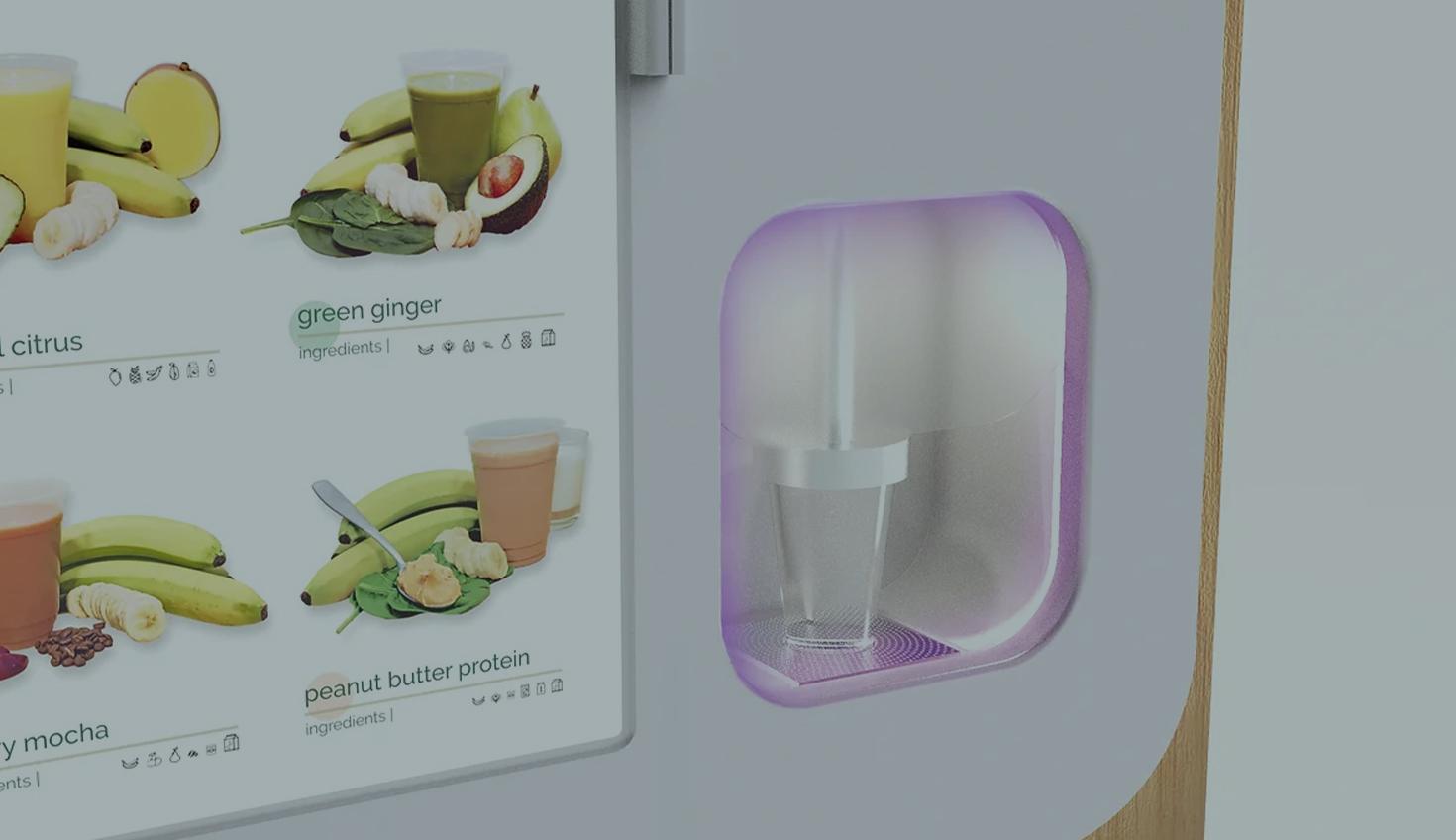 “If you choose strawberry banana, for instance, the cup will move to the area where it will dispense strawberry and banana behind the scenes. Then, the cup moves to an area that’s visible to the customer, and liquids are dispensed. After that, the cup is dropped into an area where everything is blended. When the drink is ready, a customer can walk away and enjoy the smoothie, or they can stick around and watch a mechanism drop down and clean the machine for the next drink.”