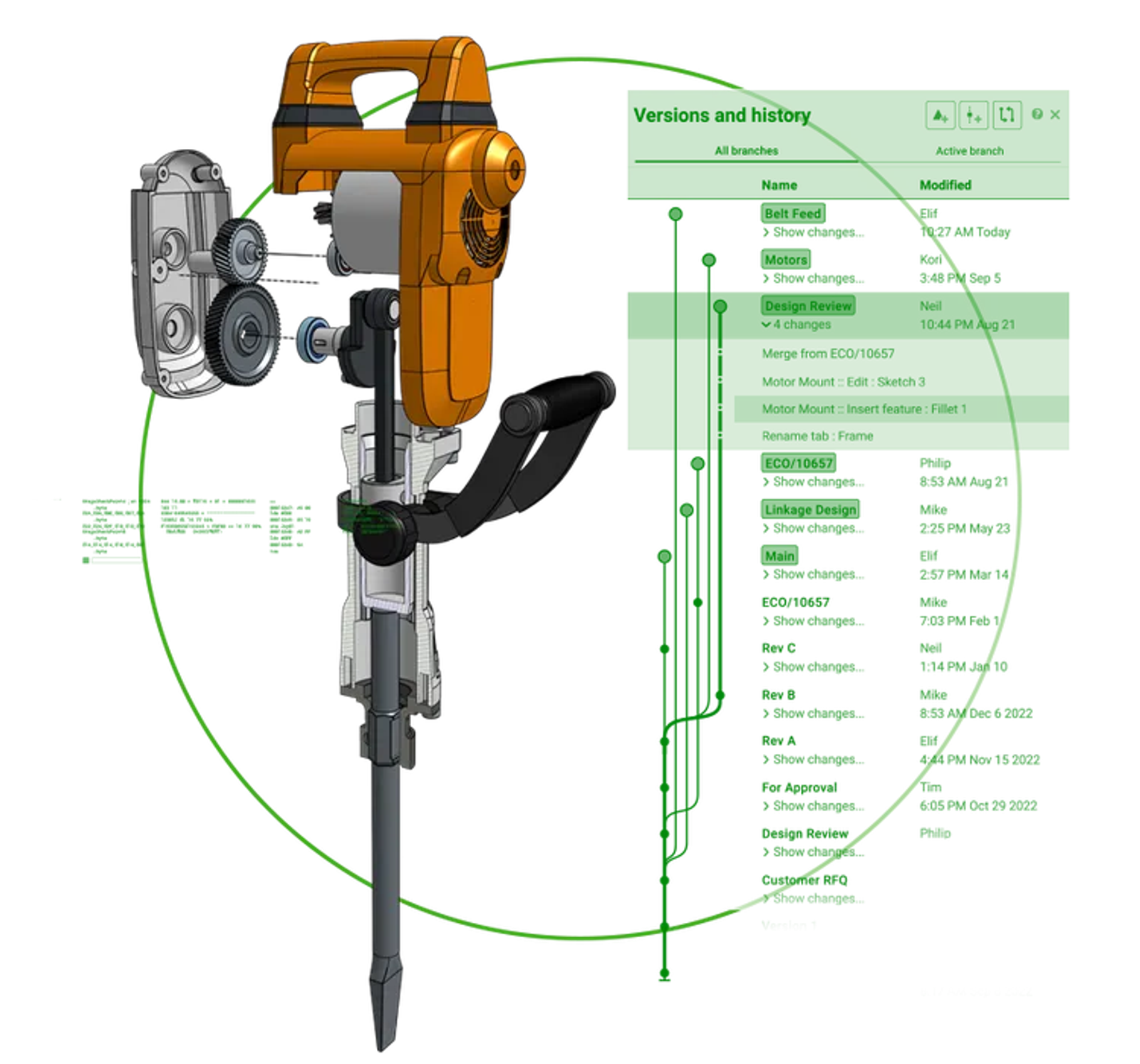 Onshape's built-in Product Data Management (PDM) is a hassle-free way to centralize, store, search, and manage your data without the need for an expensive PDM system. Designed using a database architecture (instead of files), Onshape’s unique approach to PDM increases visibility while ensuring traceability of every action taken during the design process. This eliminates version control headaches while ensuring there's only one single-source of design truth without having to implement file check-in/check-out protocols.