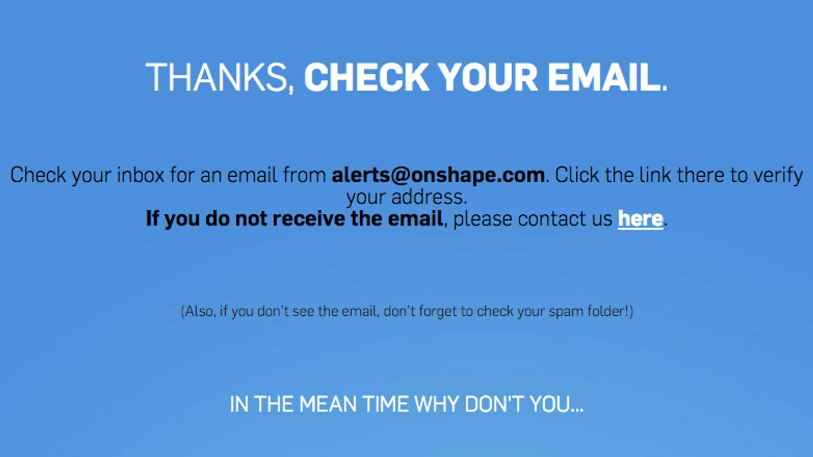 Follow the instructions and then check your inbox for an email from alerts@onshape.com. You’ll finish setting up your password, and that’s it, you’re in! The whole process should take under 2 minutes. From there, you can follow the links in the email or go to cad.onshape.com and get started! There’s no waiting for updates or installations. You and your students can jump right into CAD.