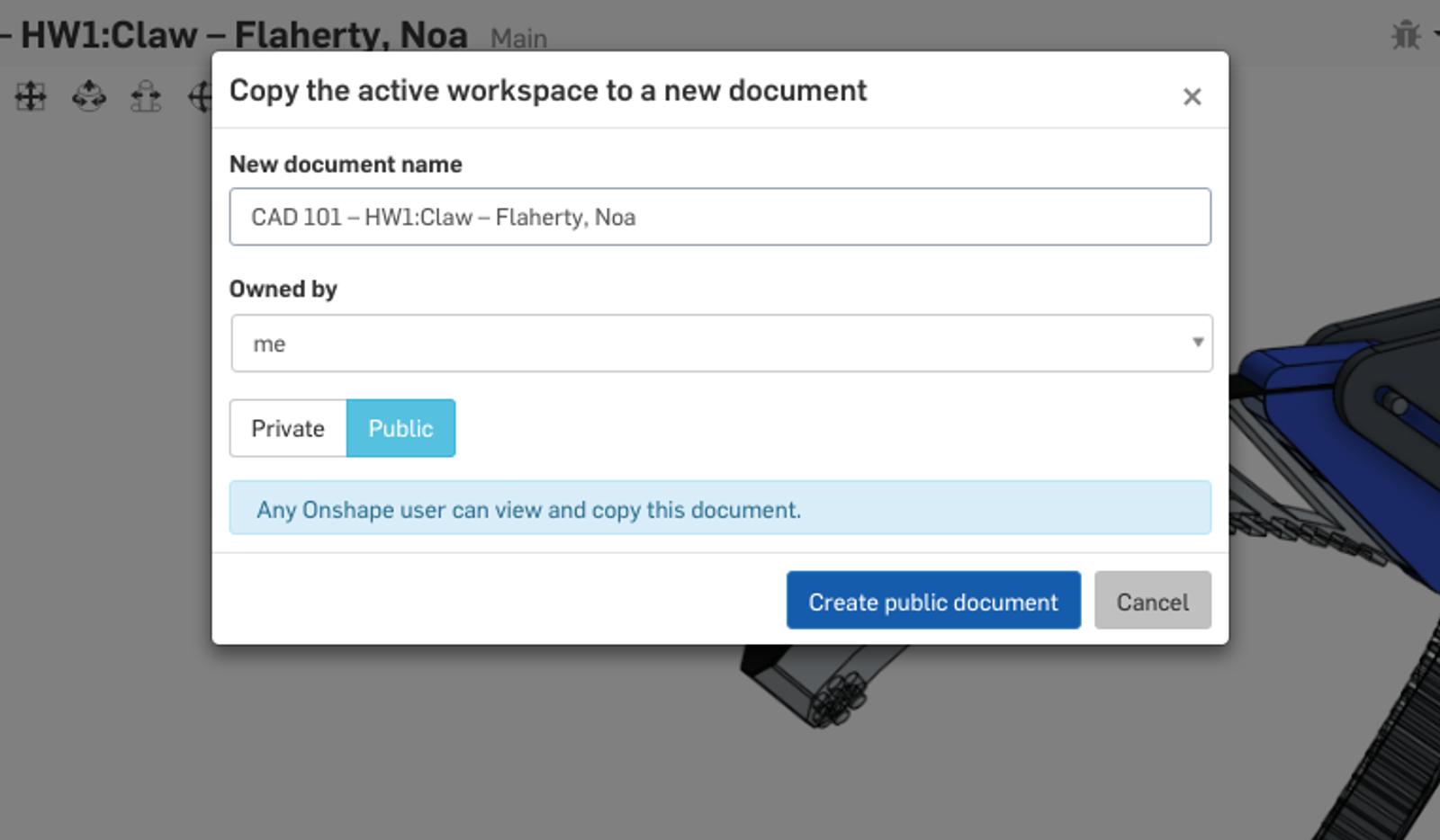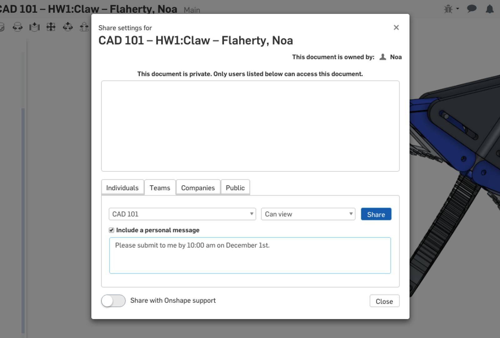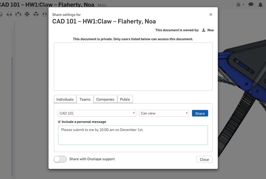 You will likely want to share Onshape documents with your students, but it can be painful to share the same Document with each student one at a time. Welcome to Classes and Assignments! First, you’ll want to create your class.