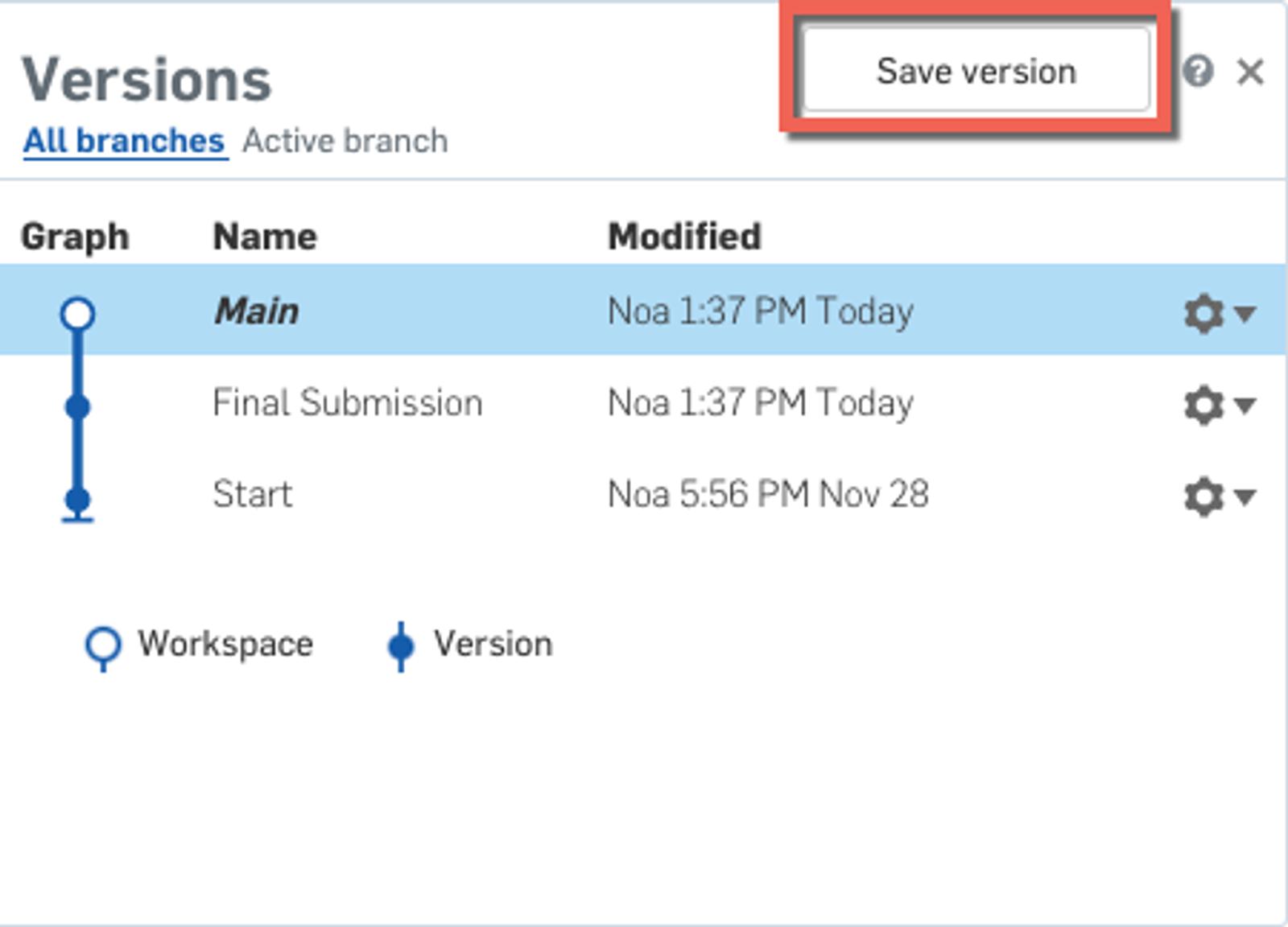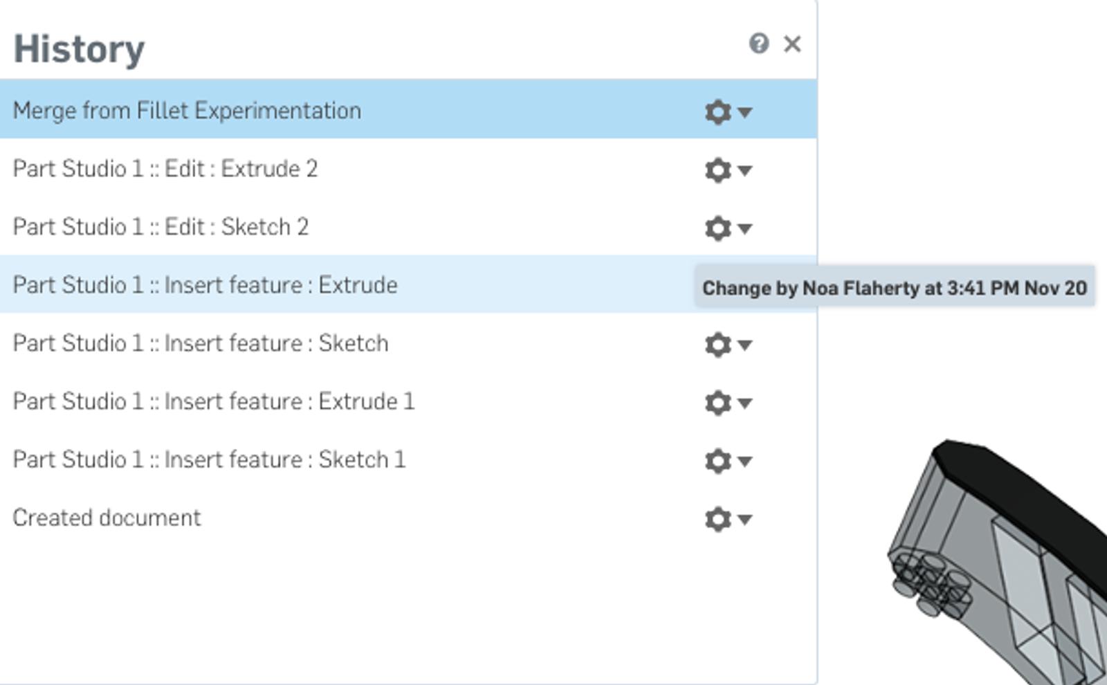 Onshape’s cloud-native functionality gives unparalleled access to document control and collaboration. Because documents are automatically saved, all users will have access to the most recent version of a document. Versions and history captures every step of the process and allows for you to provide feedback on any step, help students revert to an earlier version, allow students to create multiple branches and versions that they can then merge back together when they choose their best ideas together, and even help you see if documents are copied or being used by multiple people if you are looking for plagiarism control.