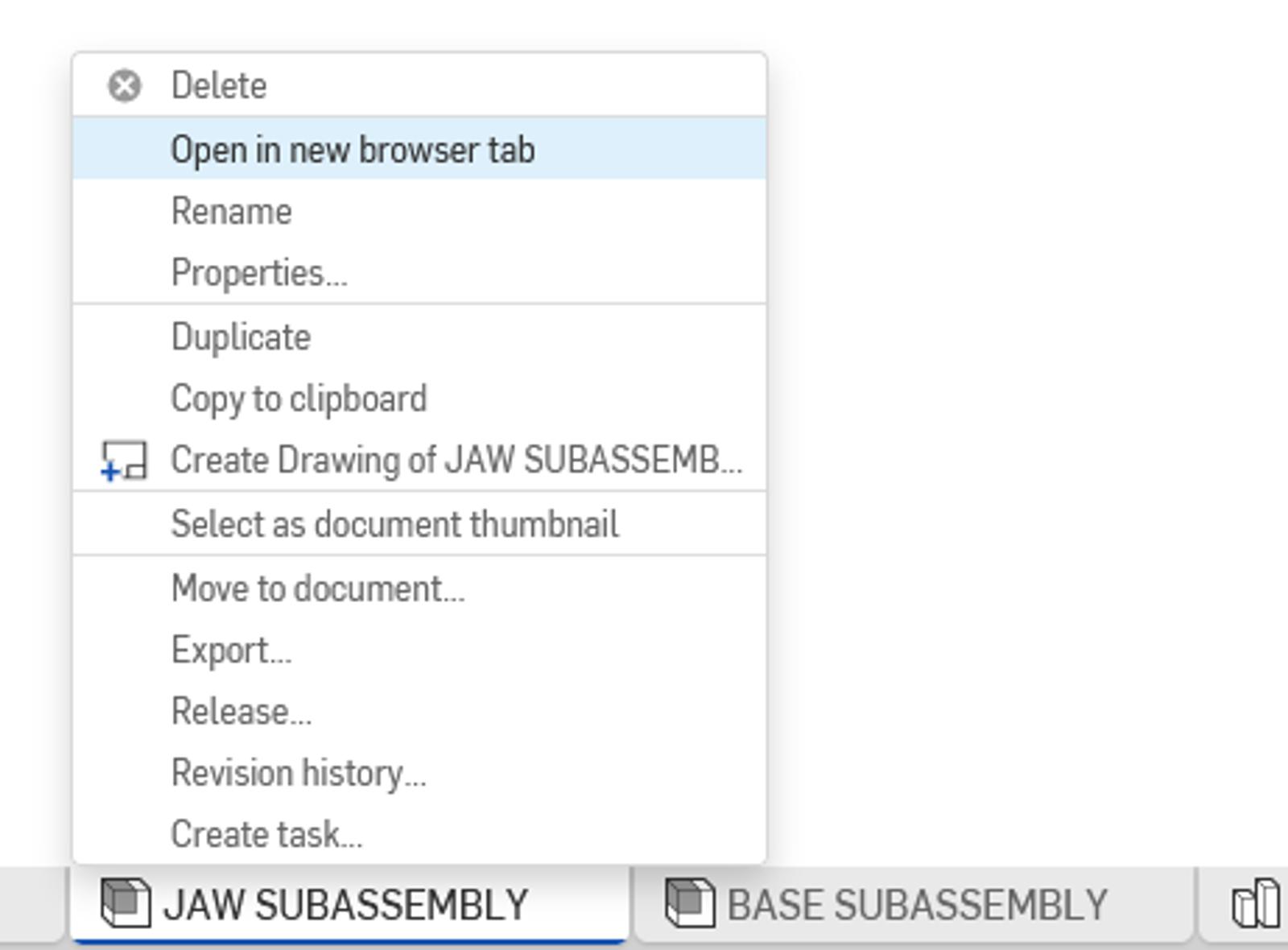 You can have as many instances of Onshape running as you like, including within a single Document. Start by right-clicking your browser tab or Onshape tab to duplicate that Document in a new tab, opening the door to major efficiency gains (especially with multiple monitors).