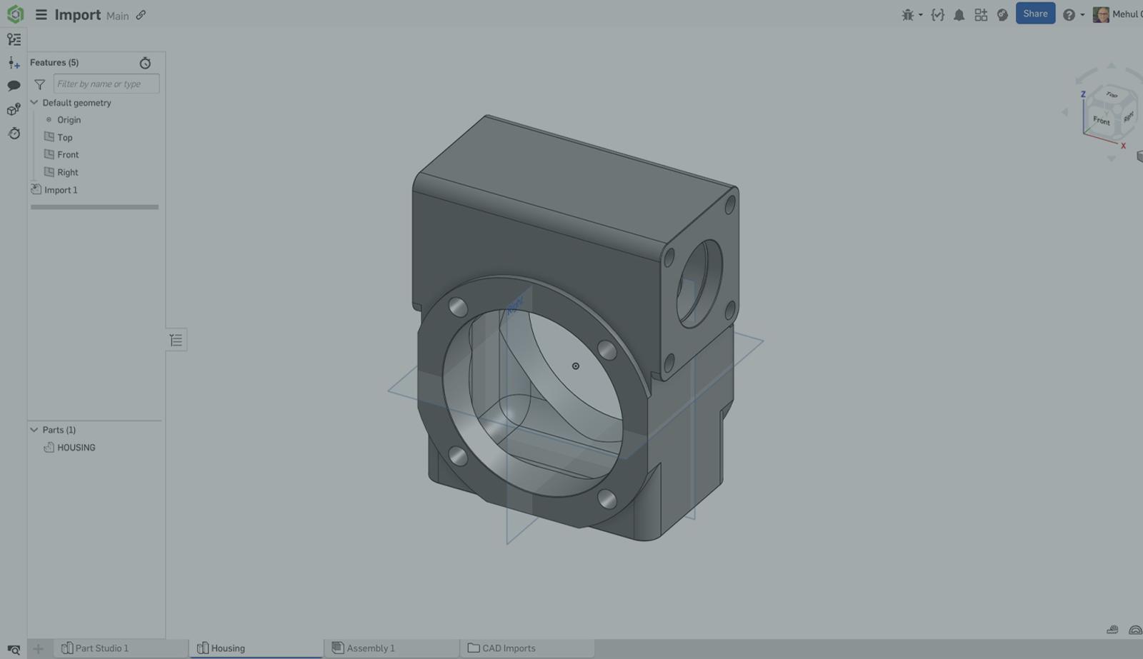 When you import a STEP, IGES, or Parasolid file to Onshape, you are left with a simple solid that does not have any parametric features. Parametric CAD is creating 3D models using parameters, relationships, and constraints while manipulating designs with focus on defining how the model should behave when modifications occur.