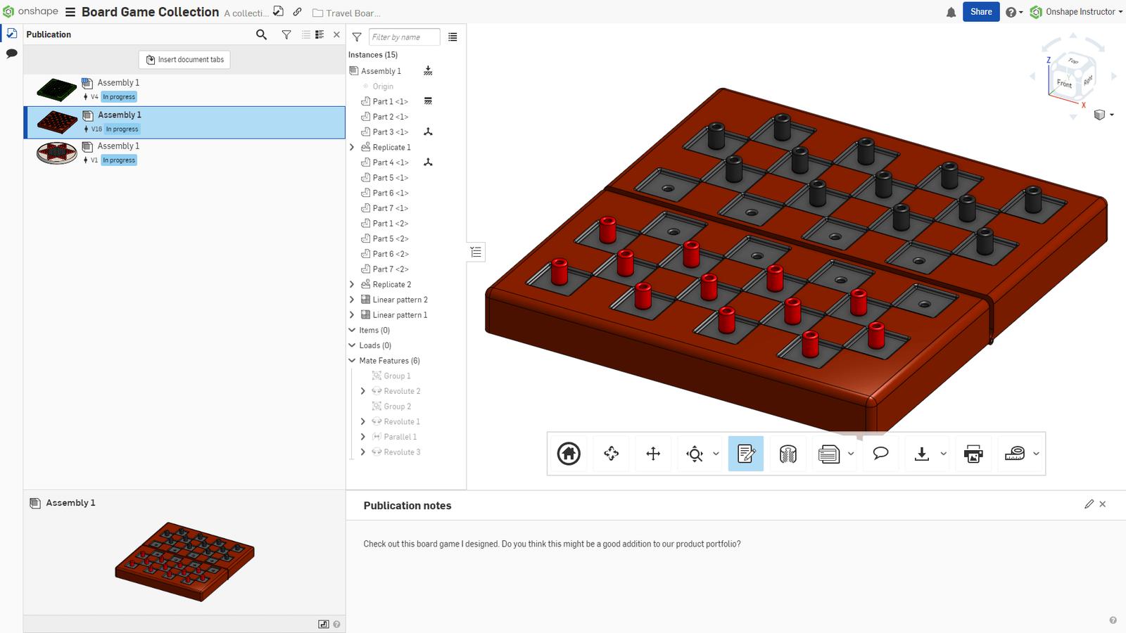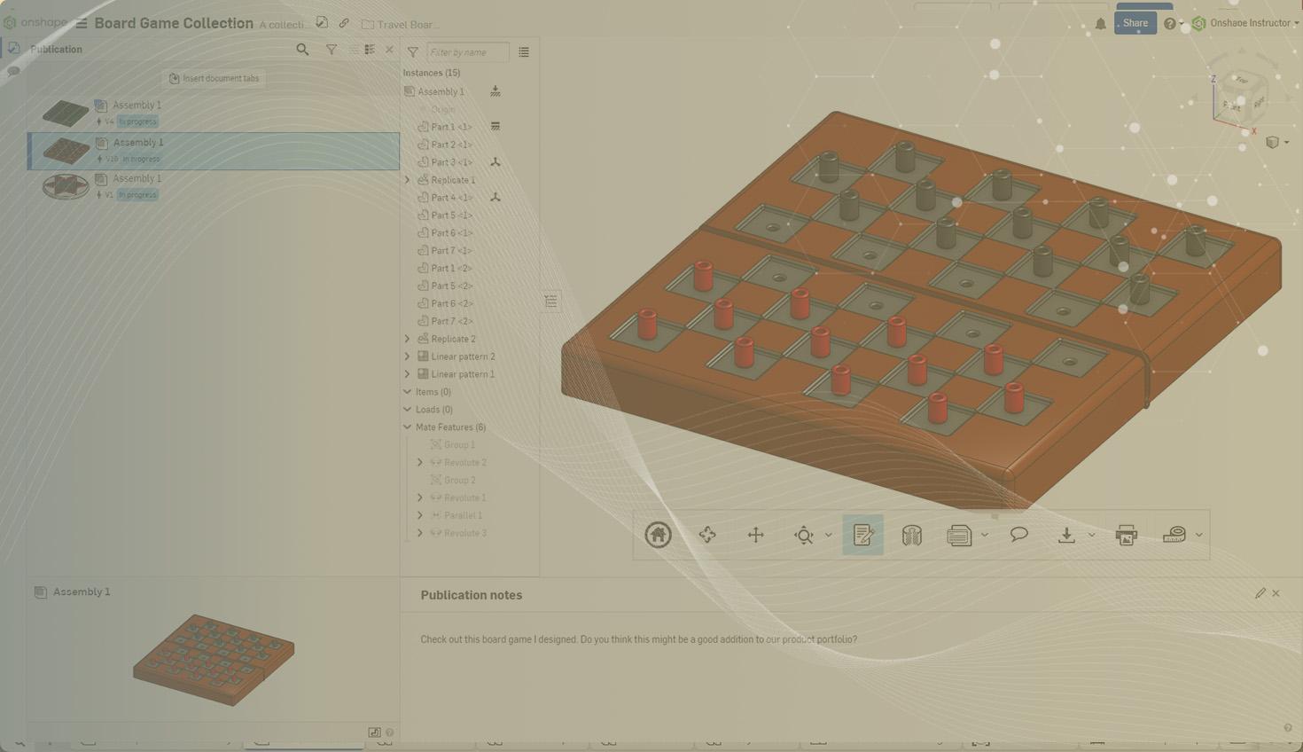 Onshape’s other social collaboration tools, such as Follow Mode, can also be used with Publications.
