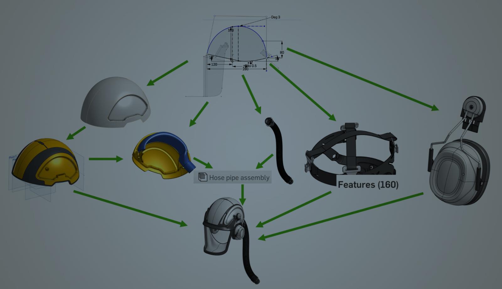 Going one step further, this hierarchy can also include a master sketch that drives the part documents and sub-assemblies, which are then collected into a top-level assembly. This also benefits top-level assembly performance: