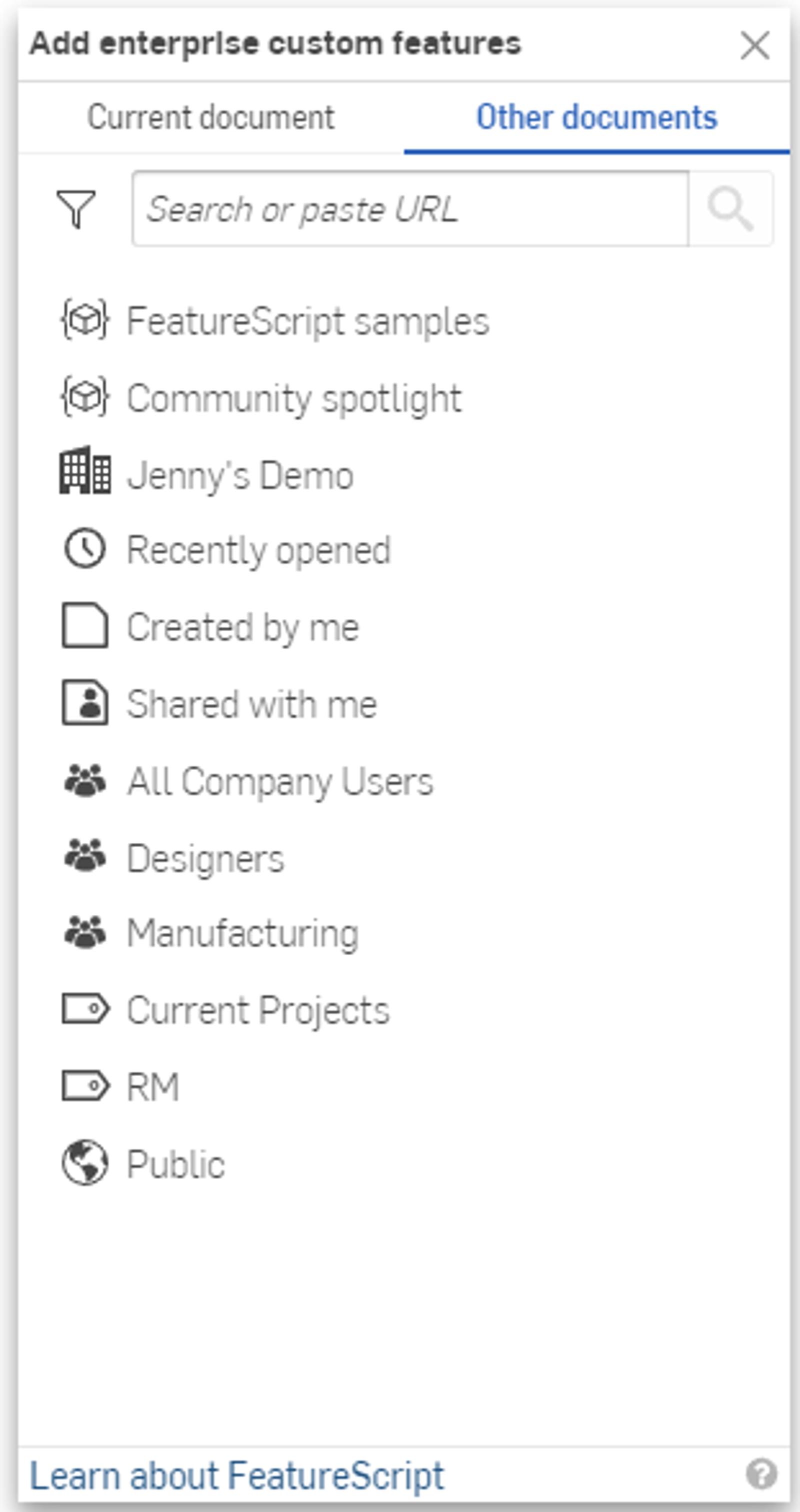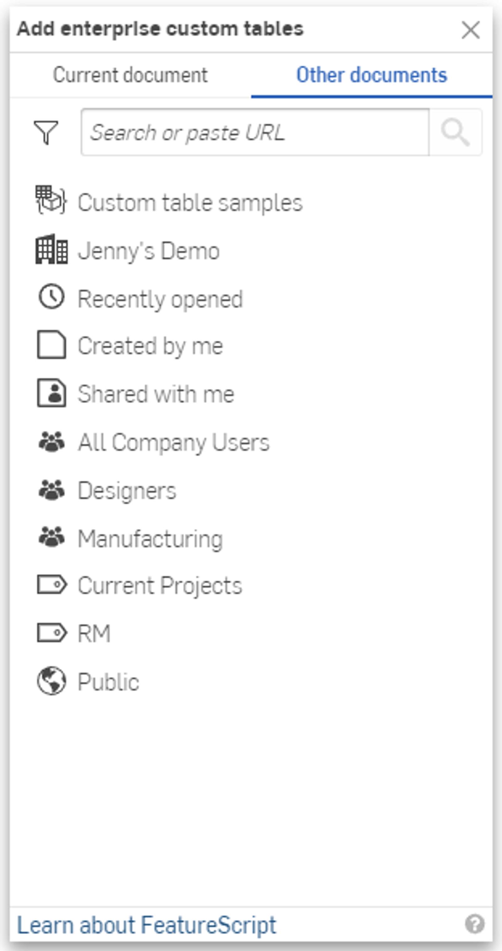 To leverage the full potential of Onshape, create and use Custom features and FeatureScript-written tables. Whether you create them yourself or use the power of the Onshape Forums and community, once you have them, you probably want to share them with everyone in your organization. This Tech Tip explains how to do this.
