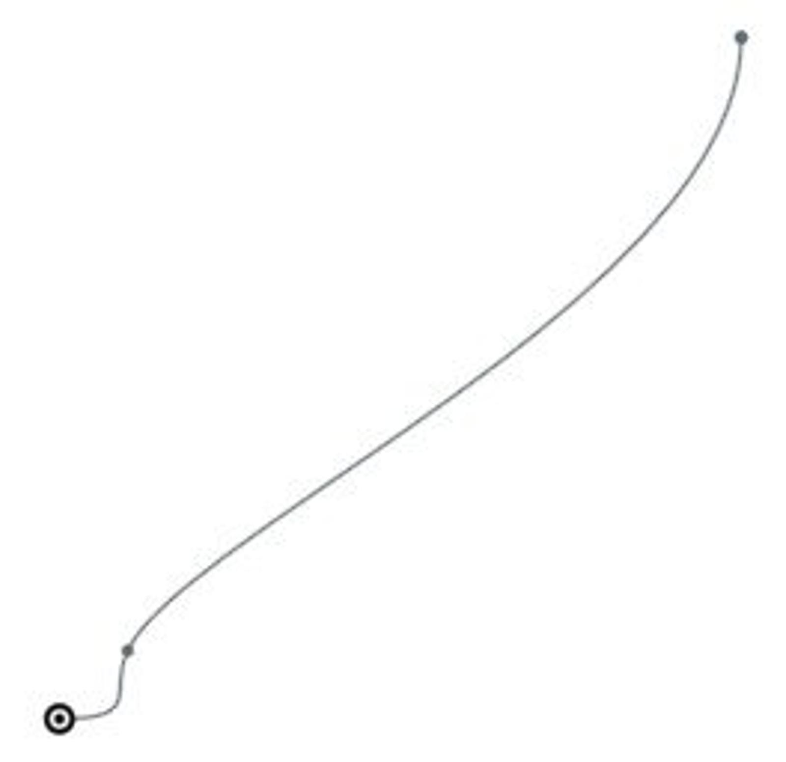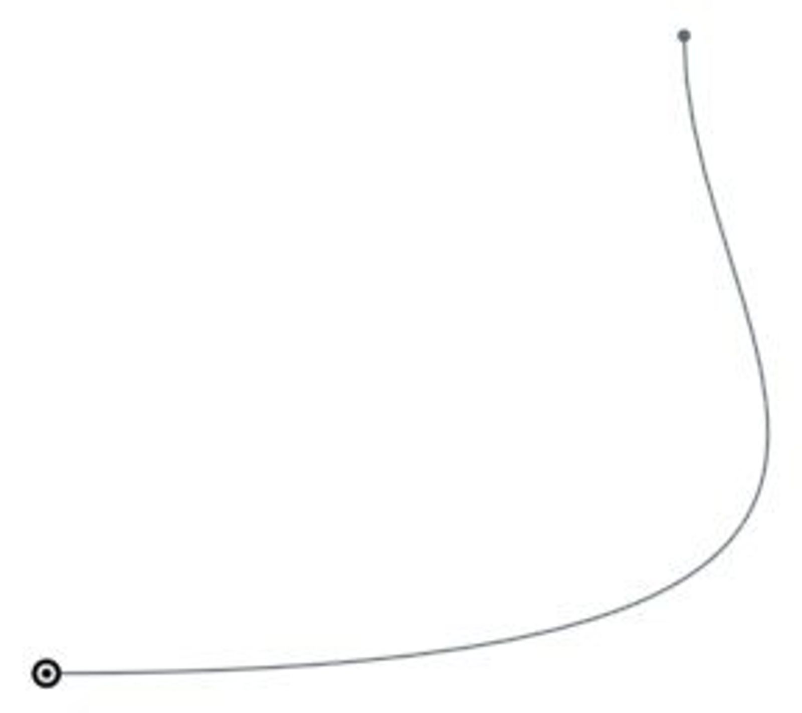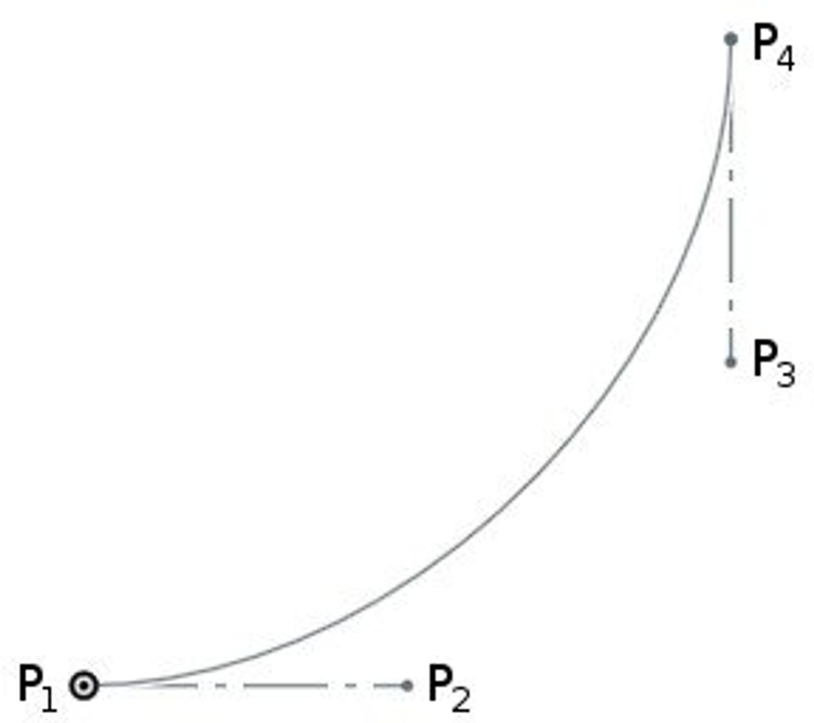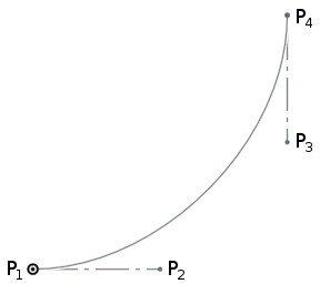 If you’re familiar with Bézier curves, the above discussion will sound familiar. A Bézier curve is defined by four control points (call them P1, P2, P3, P4). The curve launches from P1 in the direction of P2, and then approaches P4 from the direction of P3. If P2 is further away from P1, then the curve launches with more momentum in the given direction.