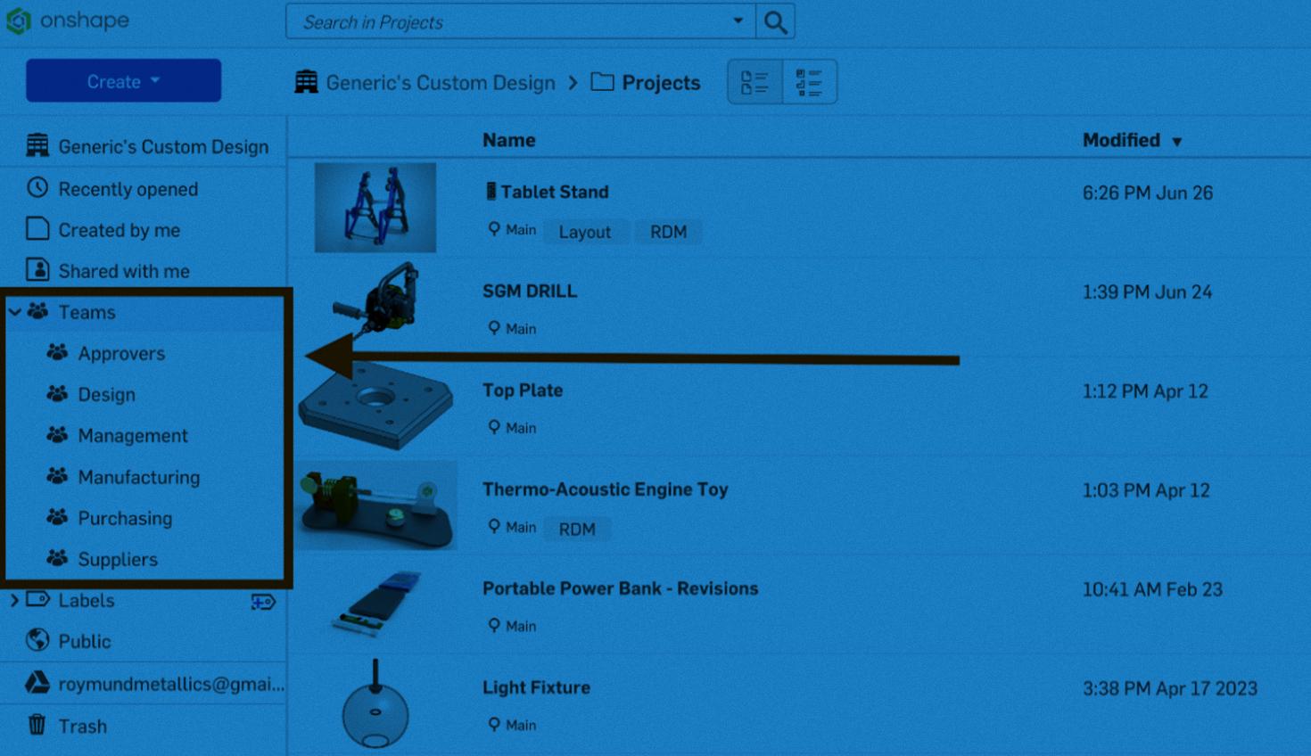 In many cases, your Onshape administrator is also a designer. Rather than seeing everything, selecting a team filter makes it much easier for them to focus on their work, rather than seeing everything that exists in the organization.