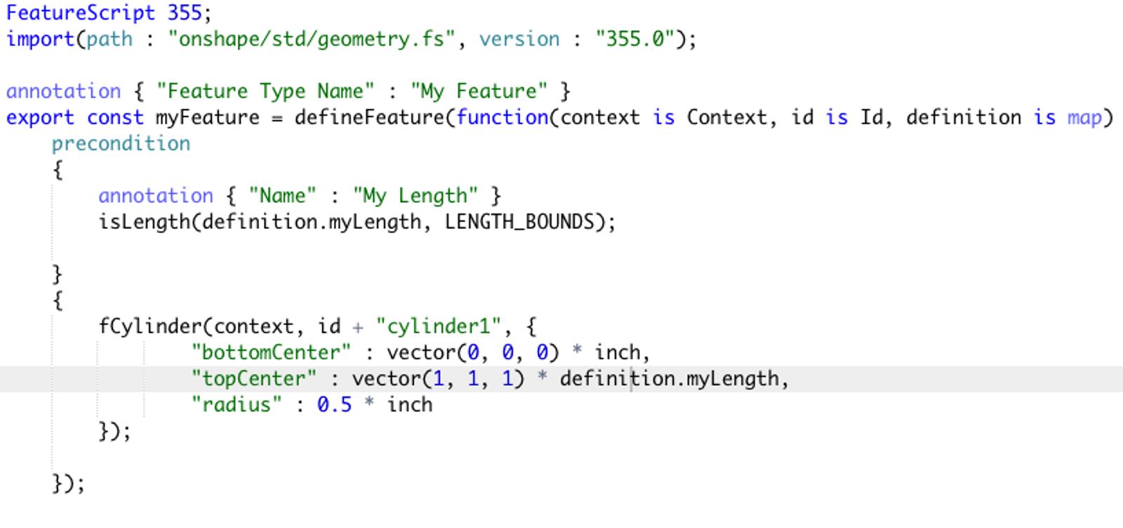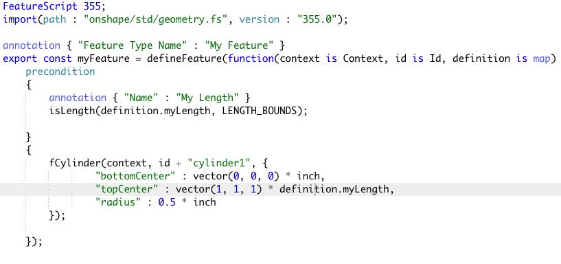 There are two main pieces to a FeatureScript feature: