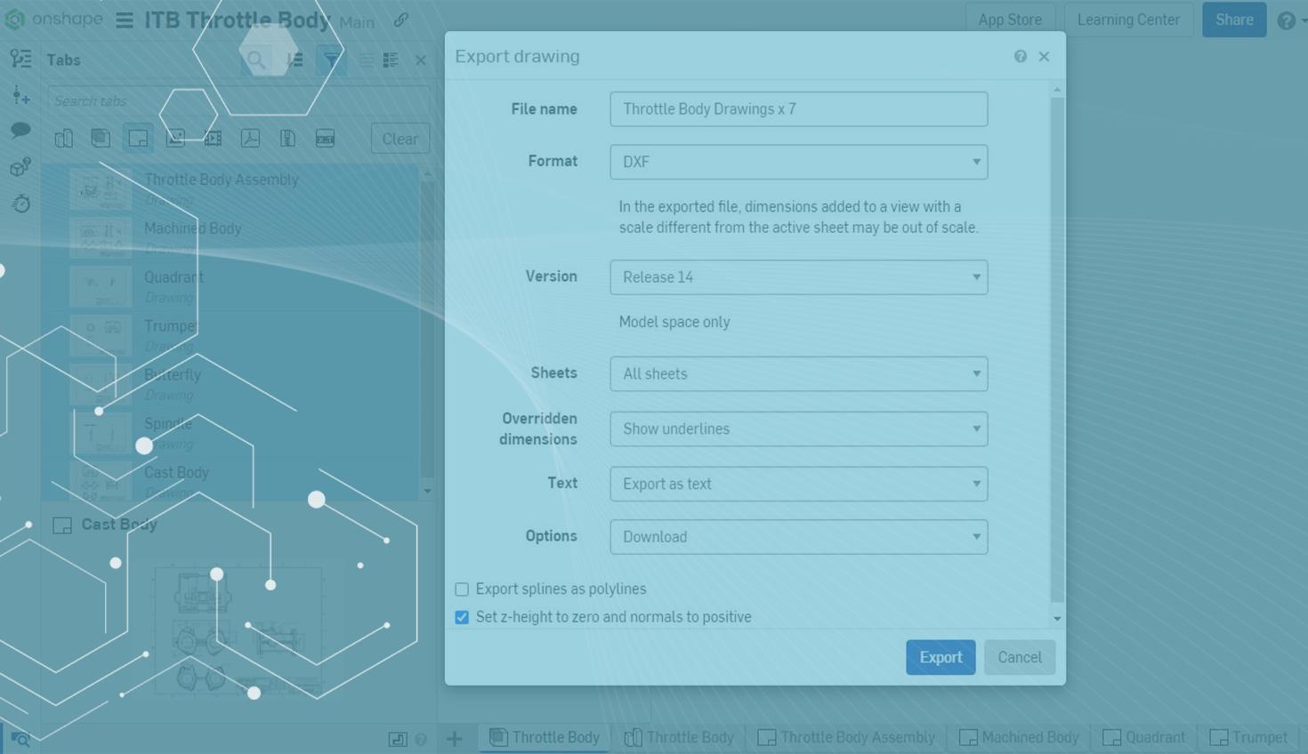 That’s right – to avoid this repetitive task, Onshape allows you to export multiple Drawings at once.
