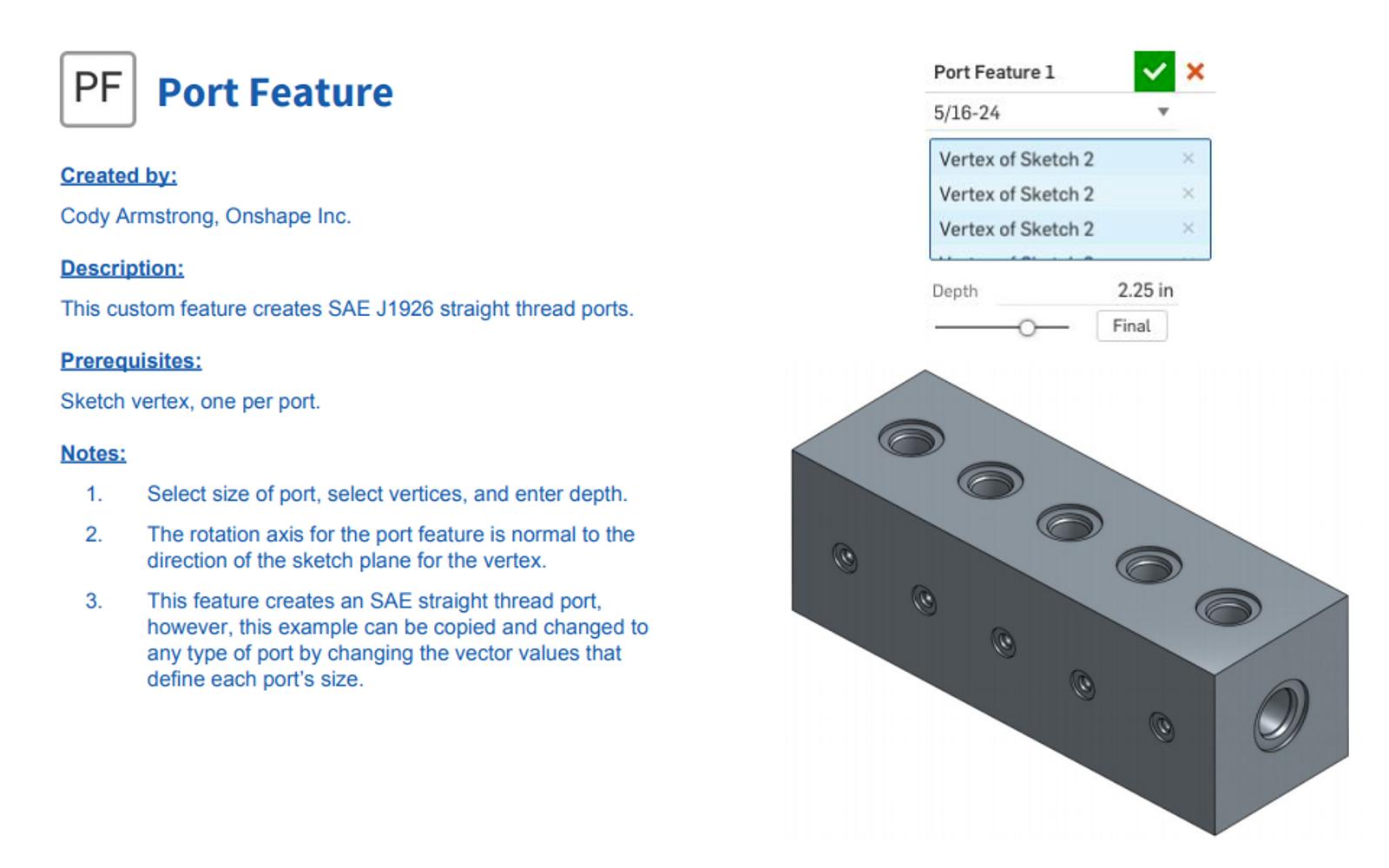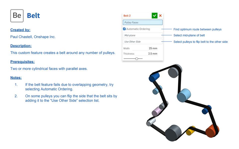 Remember, these are just examples. The power of FeatureScript is the ability to create a custom feature that applies to what you do. So, if you don’t have a use for the features listed above, create your own. Your time invested in creating the feature will be quickly recovered once you start using it.