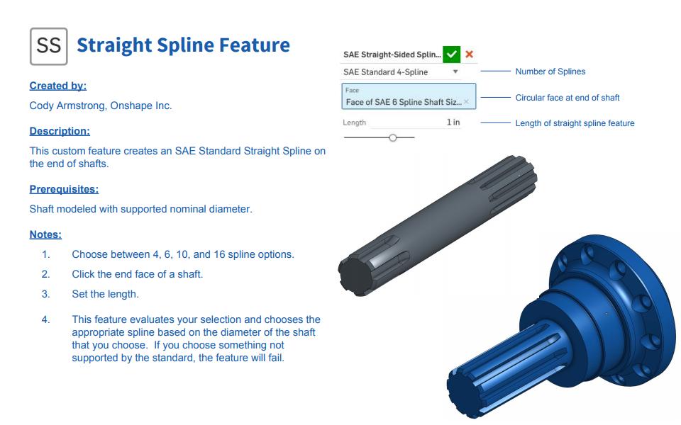 This custom feature creates an SAE Standard Straight Spline on the end of shafts.
