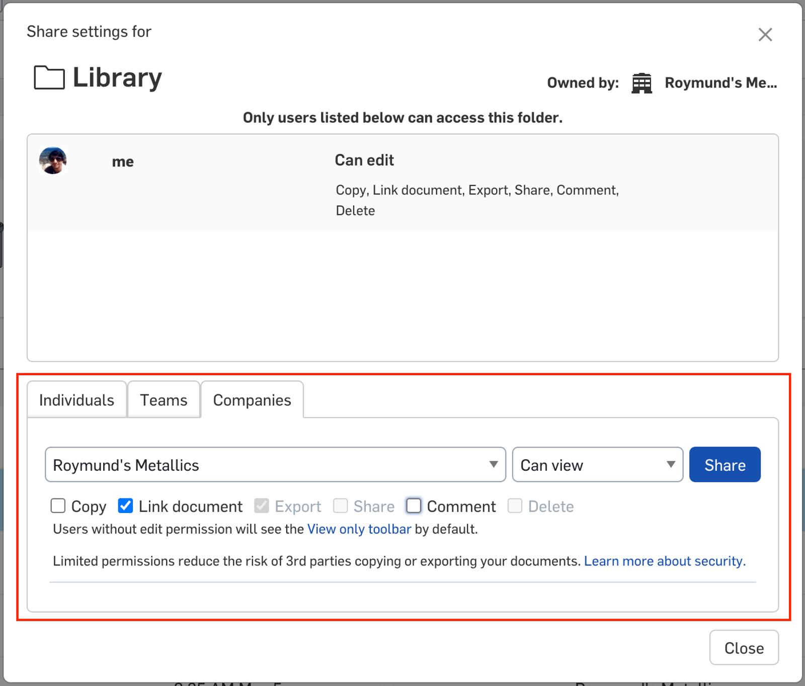 Pro Tip: We recommend that users with admin permissions perform this task. You may also share the folder with upgraded permissions (for example, edit) with a team of users responsible for maintaining the library.