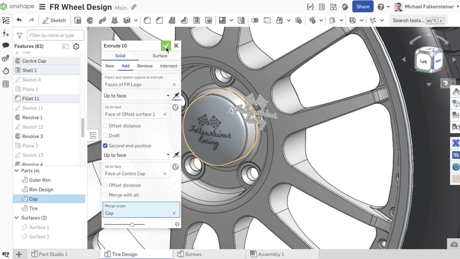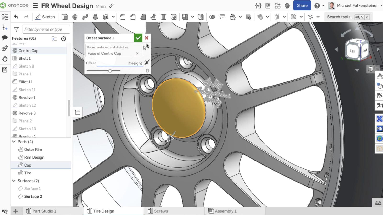 The next step is to create an offset surface from the surface on which the logo is to be extruded later. It is best to work with a variable for the offset here so that you can easily adjust the logo's height later.