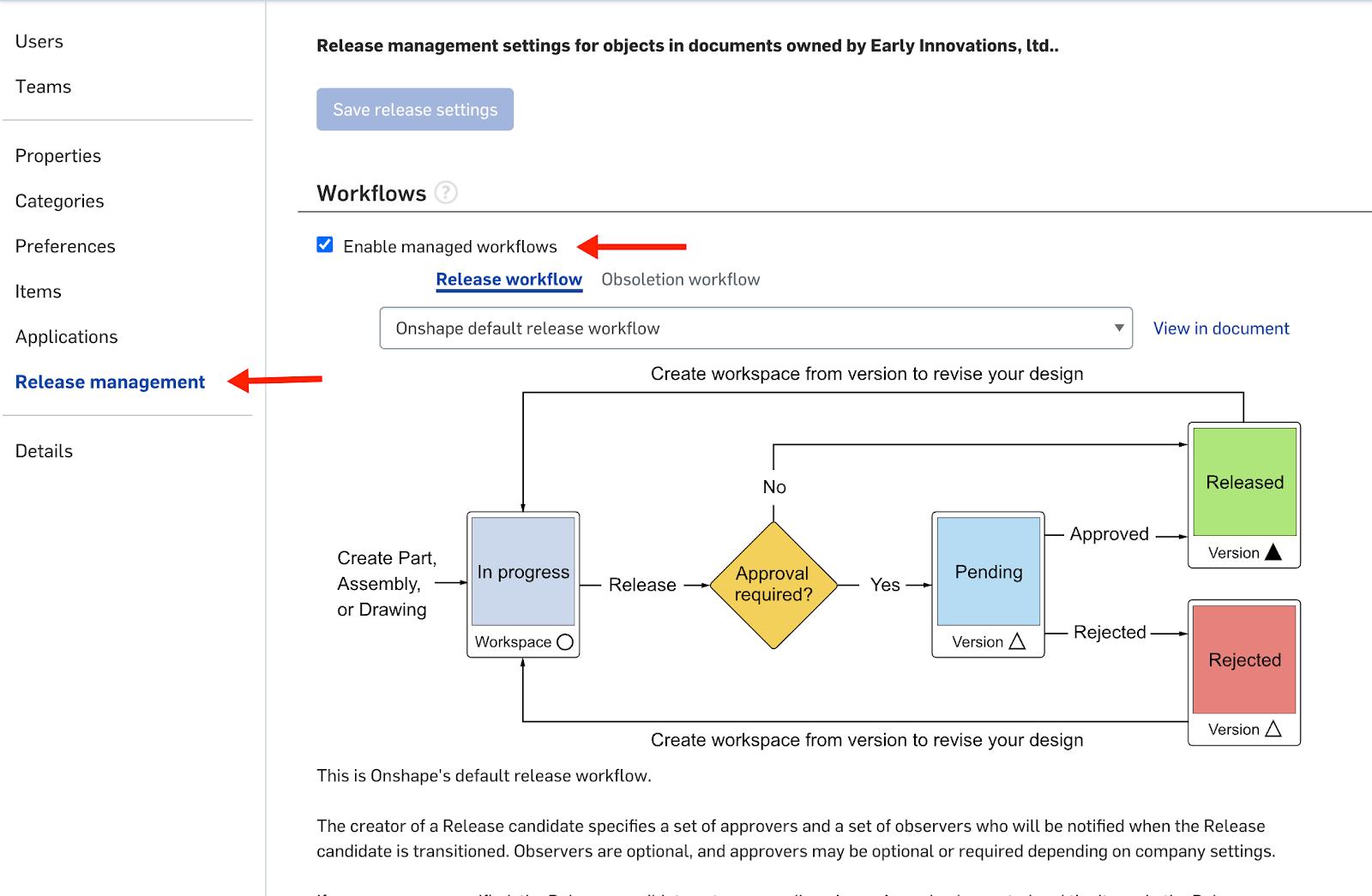In the Onshape Professional subscription, you have access to release management. This allows users within your company to move objects through an approval process that will automatically increment revision. This Tech Tip will focus on how you can allow an outside party to participate in your process as an Observer at no additional cost.