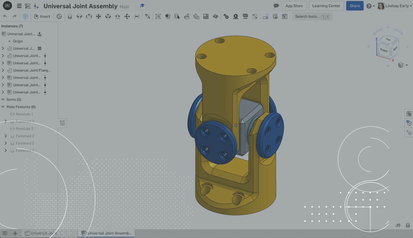 Today’s Tech Tip will focus on the stability of references between Onshape Linked Documents. You can link Documents by inserting a part or assembly of one Document into another. When you do this, you must choose a version or revision of the component to be inserted. In this example, the Universal Joint Center and the Universal Joint Axle are referenced from another Document.