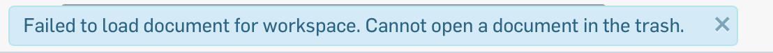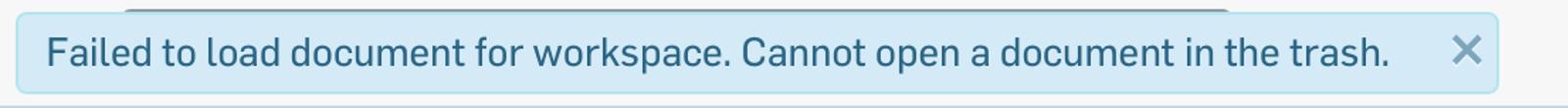 If the Document is emptied from the trash, you will receive the warning that it no longer exists. At this point, the Document is no longer recoverable: