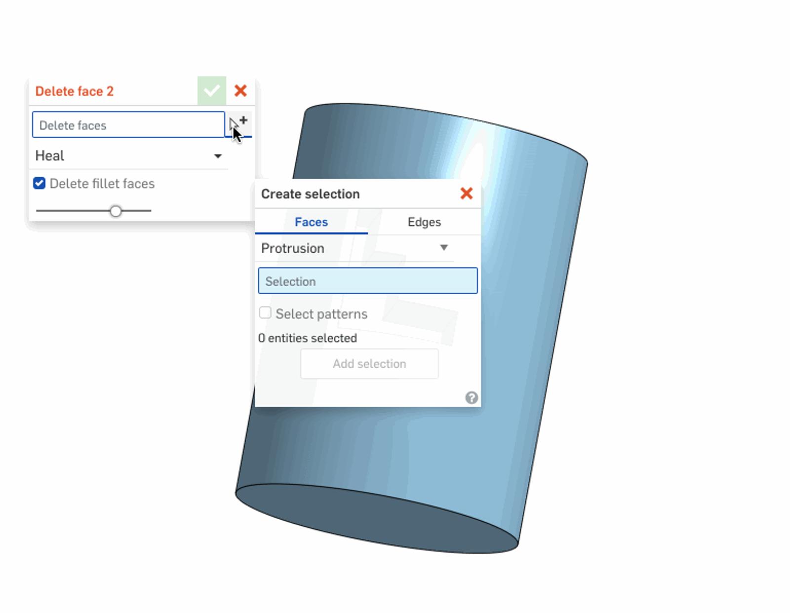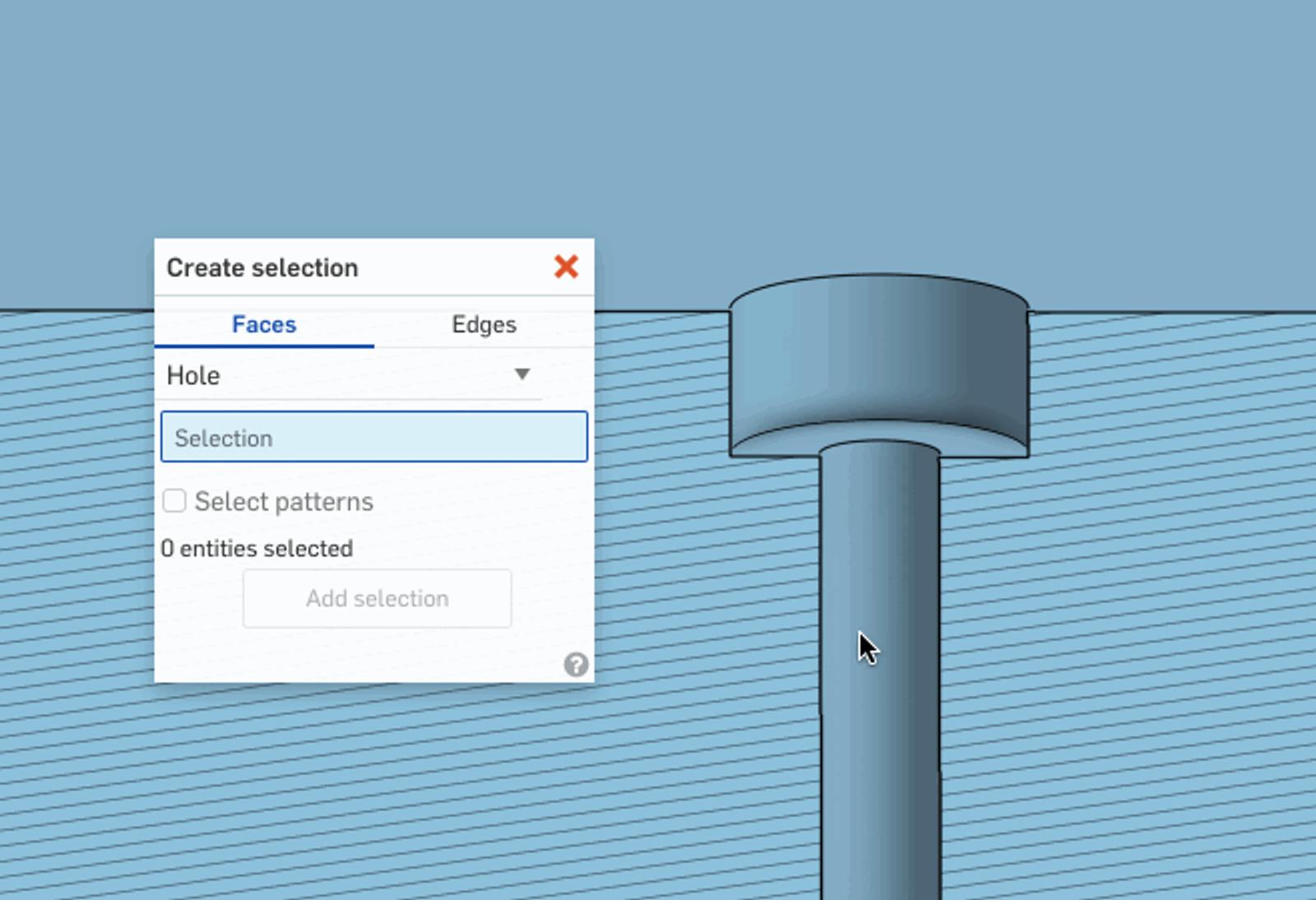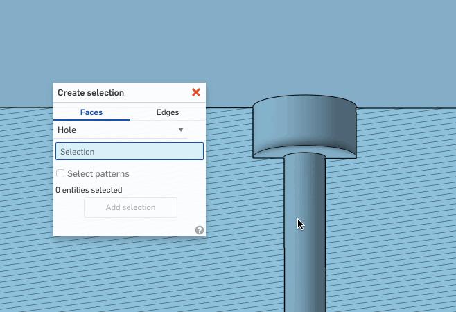 - If the feature is part of a pattern, don’t forget to check the “Select patterns” checkbox so all faces from each instance will be included.