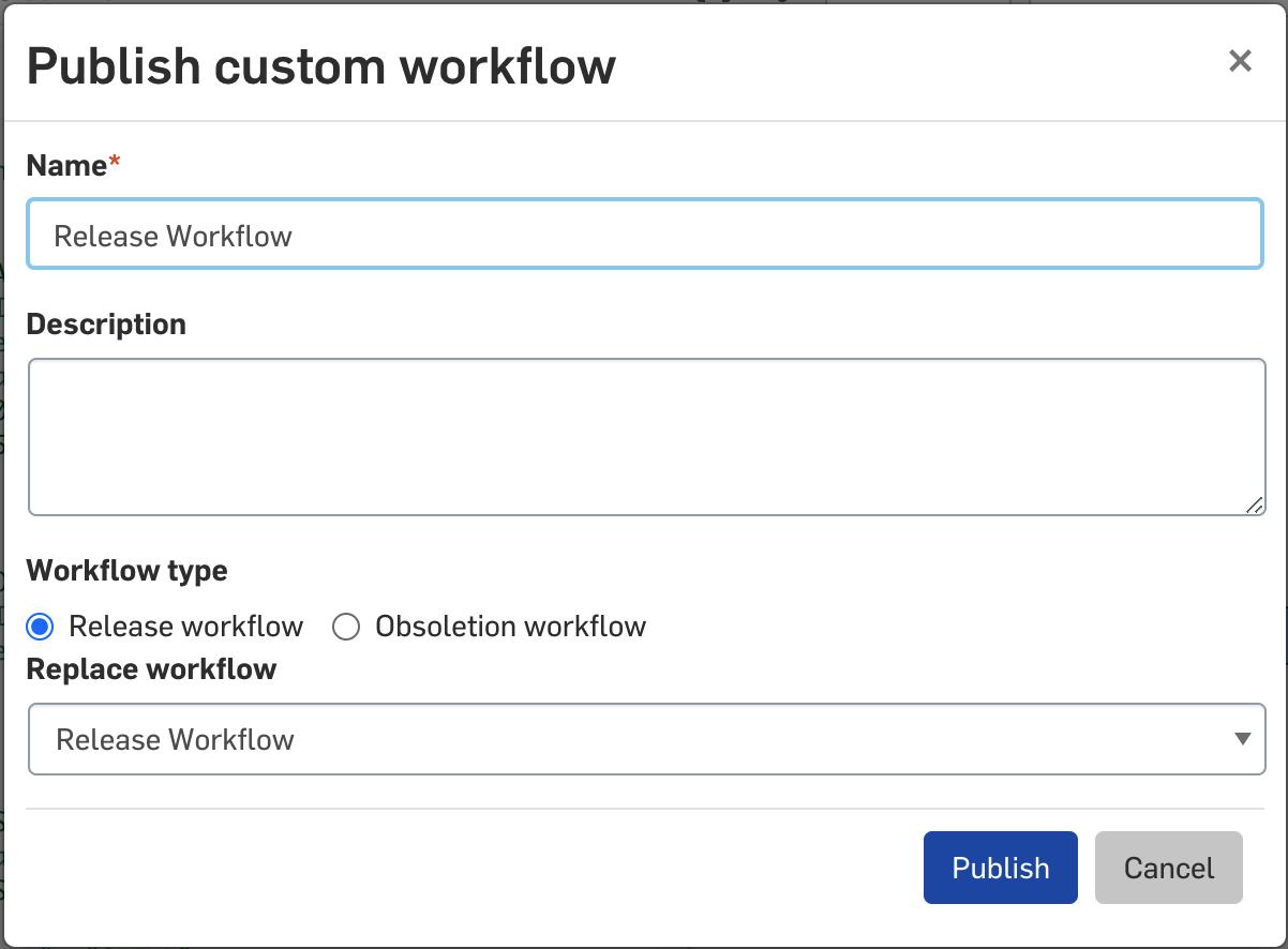 Select the Publish button to push the workflow to the Enterprise. You can choose to create a new workflow or overwrite an existing one.