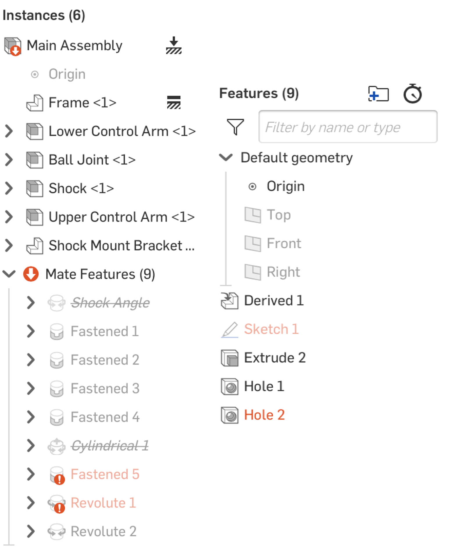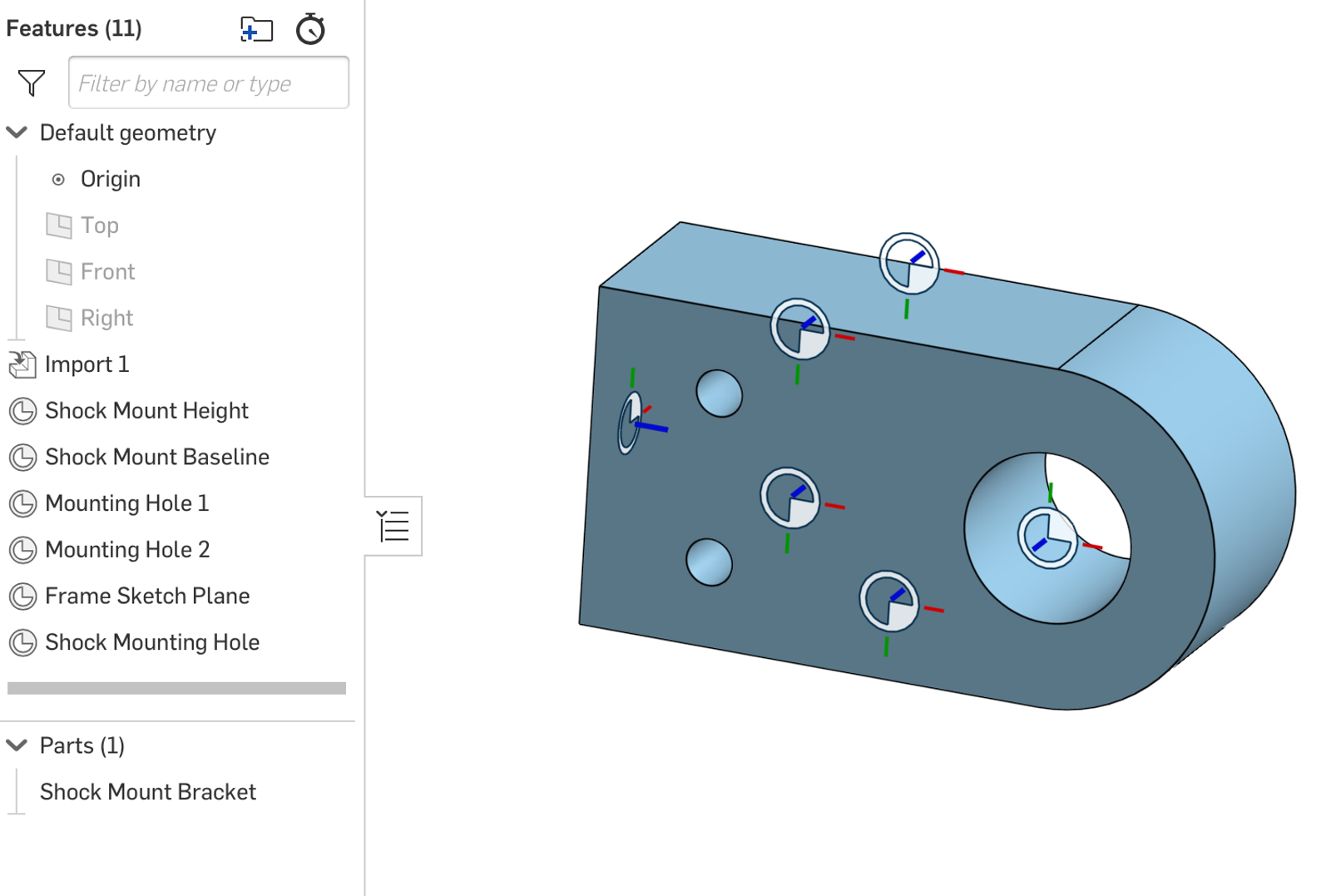 Once you import the model, create Mate Connectors around crucial pieces of geometry. Ideally, you want to replace all sketch planes, sketch entities, and mate references with a Mate Connector.