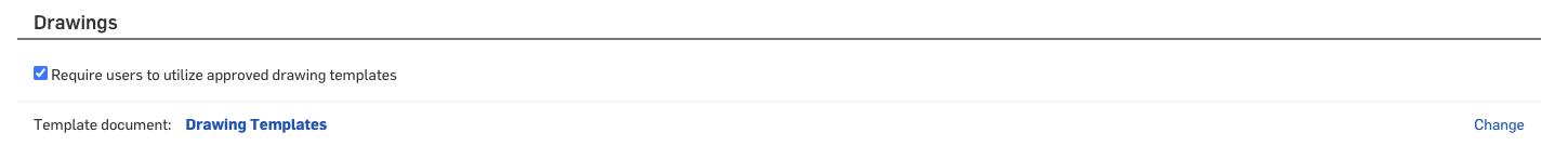 - Scroll to Drawings and check the box “Require users to utilize approved drawing templates."