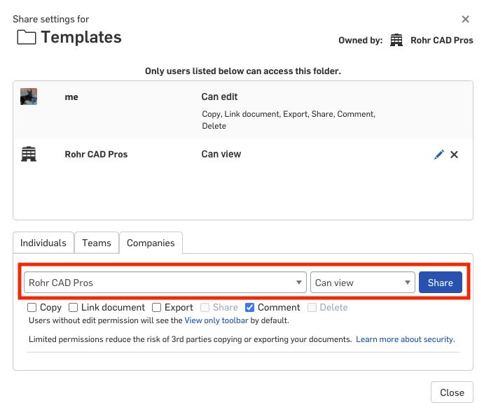 Professional users can effortlessly share standard drawing templates with Teams or Companies using Onshape's collaboration tools. But colleagues may still access public templates or create new custom templates.