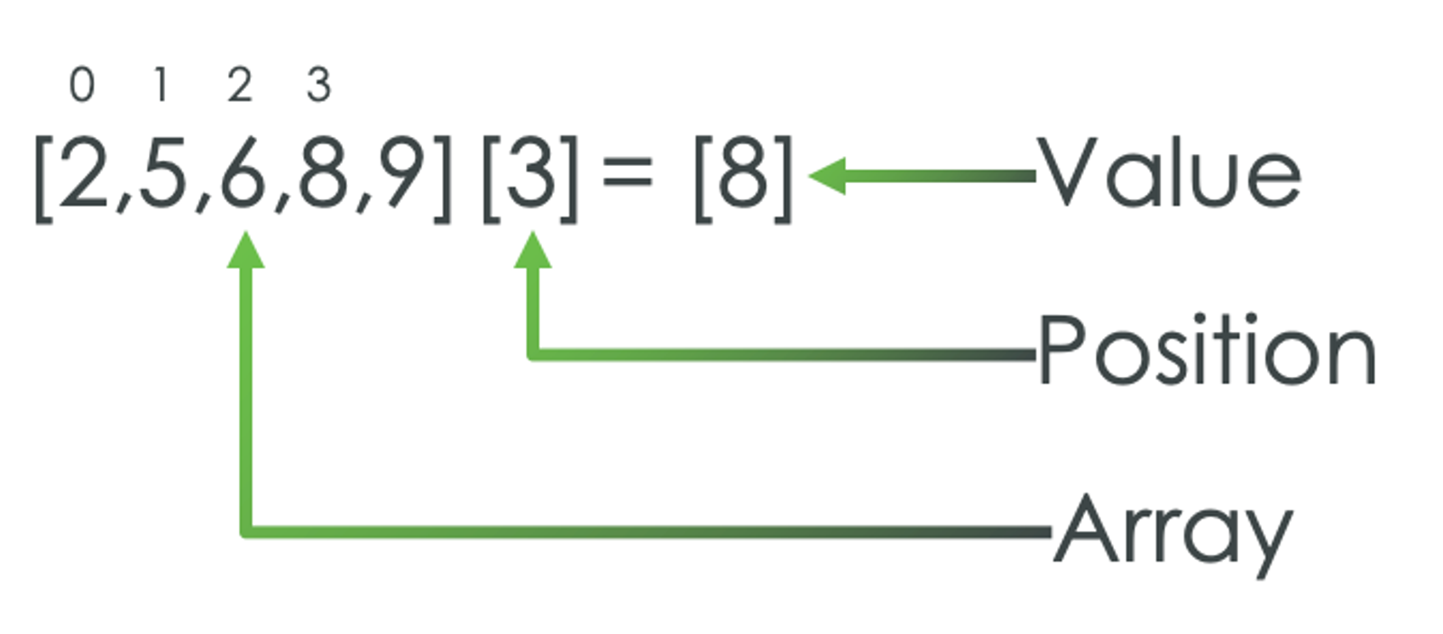 The position requests the value at position 3. The result is 8 because the position count starts at 0.