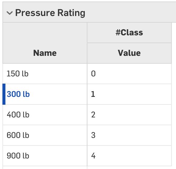 In a practical example for a pipe flange, the position is denoted by the class of flange. A 300# flange sets the #Class variable to 1.
