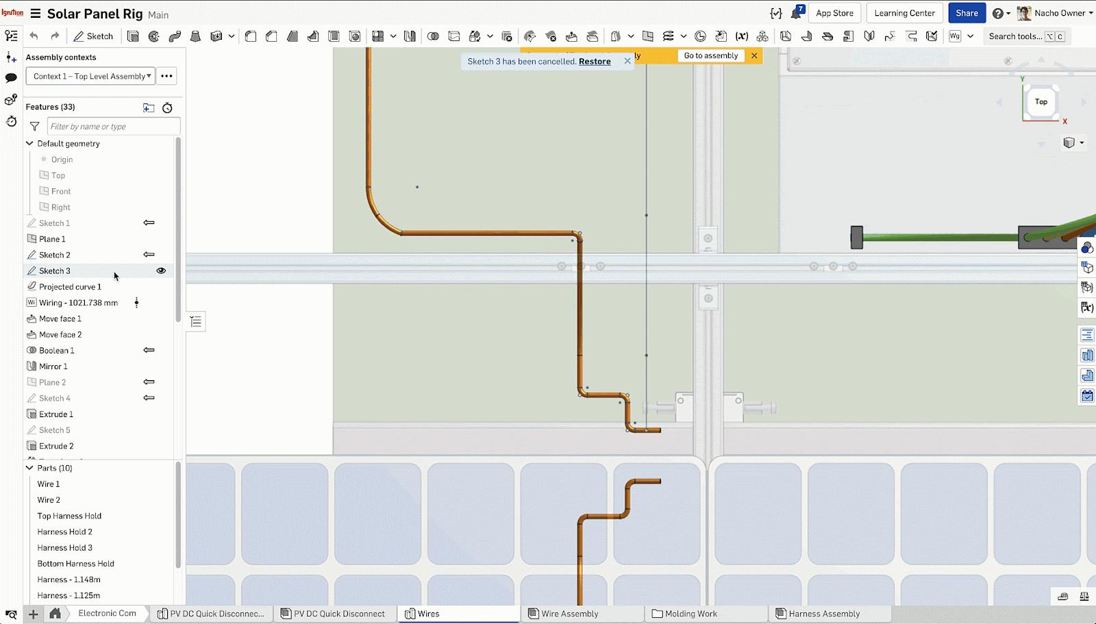 When routing wires and pipes, it can be difficult to understand how your sketch changes will affect the routes. Onshape’s Final button can help you route more effectively.