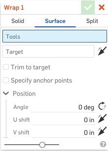 To mitigate this issue, Onshape developed the Wrap feature. The Wrap feature allows you to wrap a surface or sketch entity around a cylinder with ease.