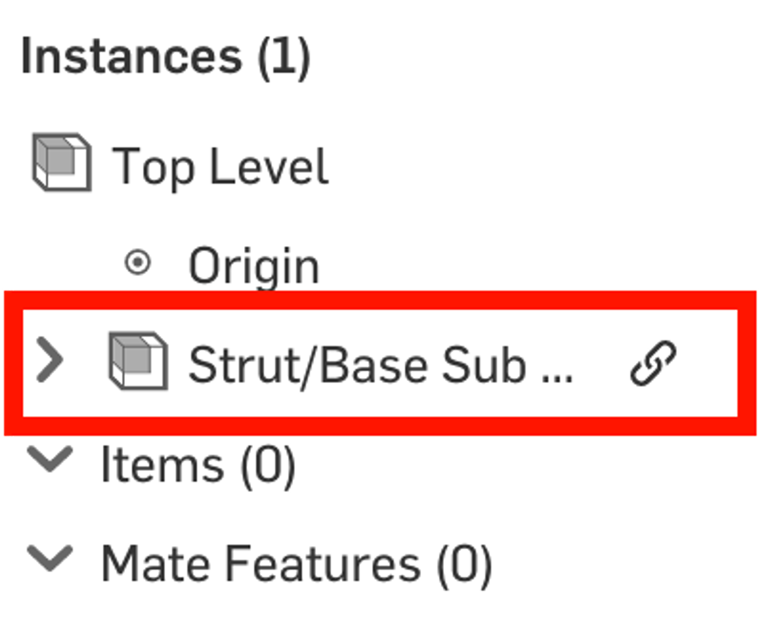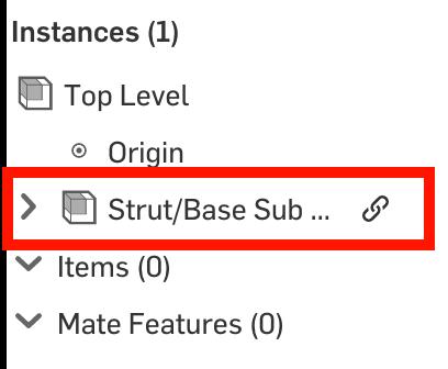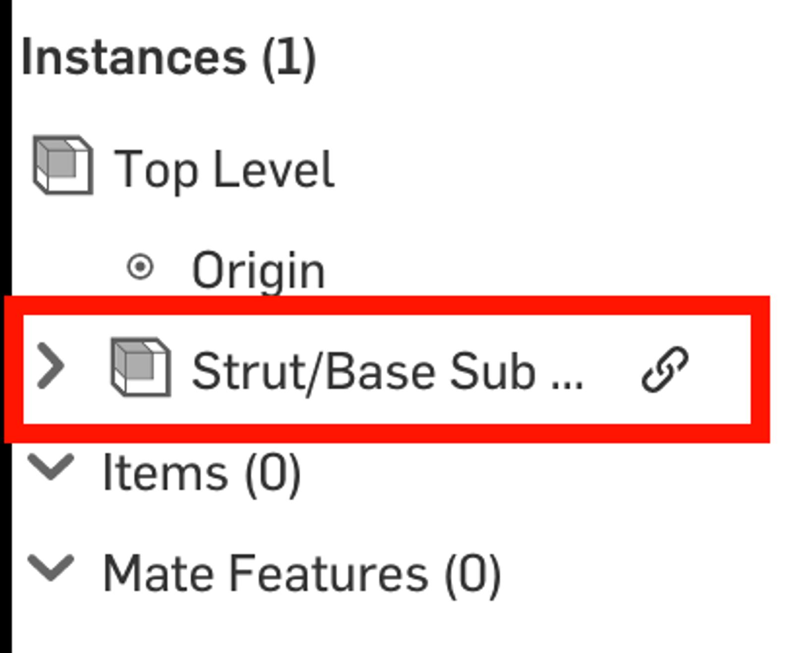 And then it is instanced in the top-level assembly. Upon instancing, the Strut/Base sub assembly is then moved to a new Document as shown in the following image: