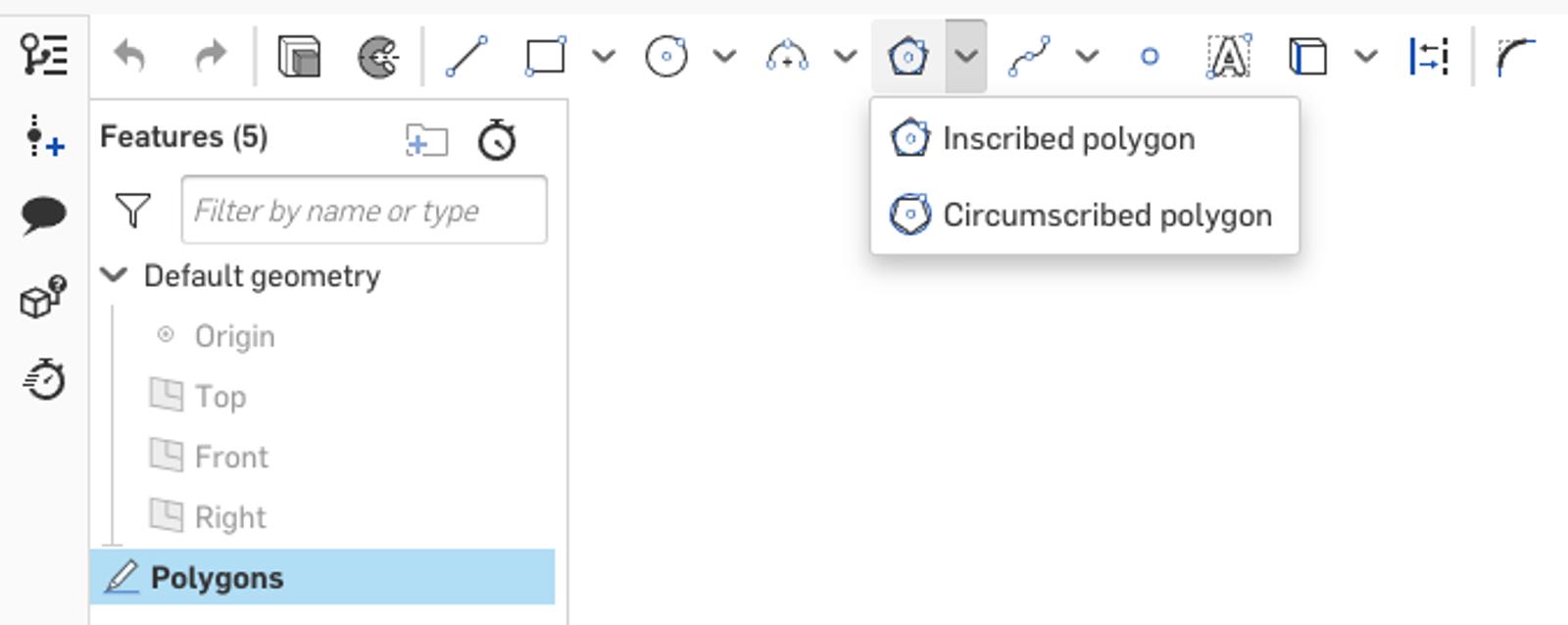 Creating a polygon takes two clicks, one at the center and one at the outside edge. After the second click, you can key in the number of sides you want. Dimensioning the construction circle will control the overall size of the polygon. You can also add other dimensions and modify the constraints that were created automatically.