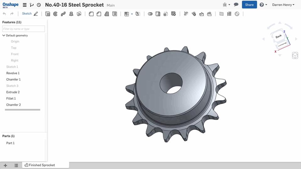 By understanding how to model a sprocket, you will gain knowledge of how to approach designs with patterns of intricate detail. It’s the perfect part for a tutorial. Watch the video at the top of this post and gain an understanding of how to build a 16-tooth sprocket to support a No. 40 roller chain.