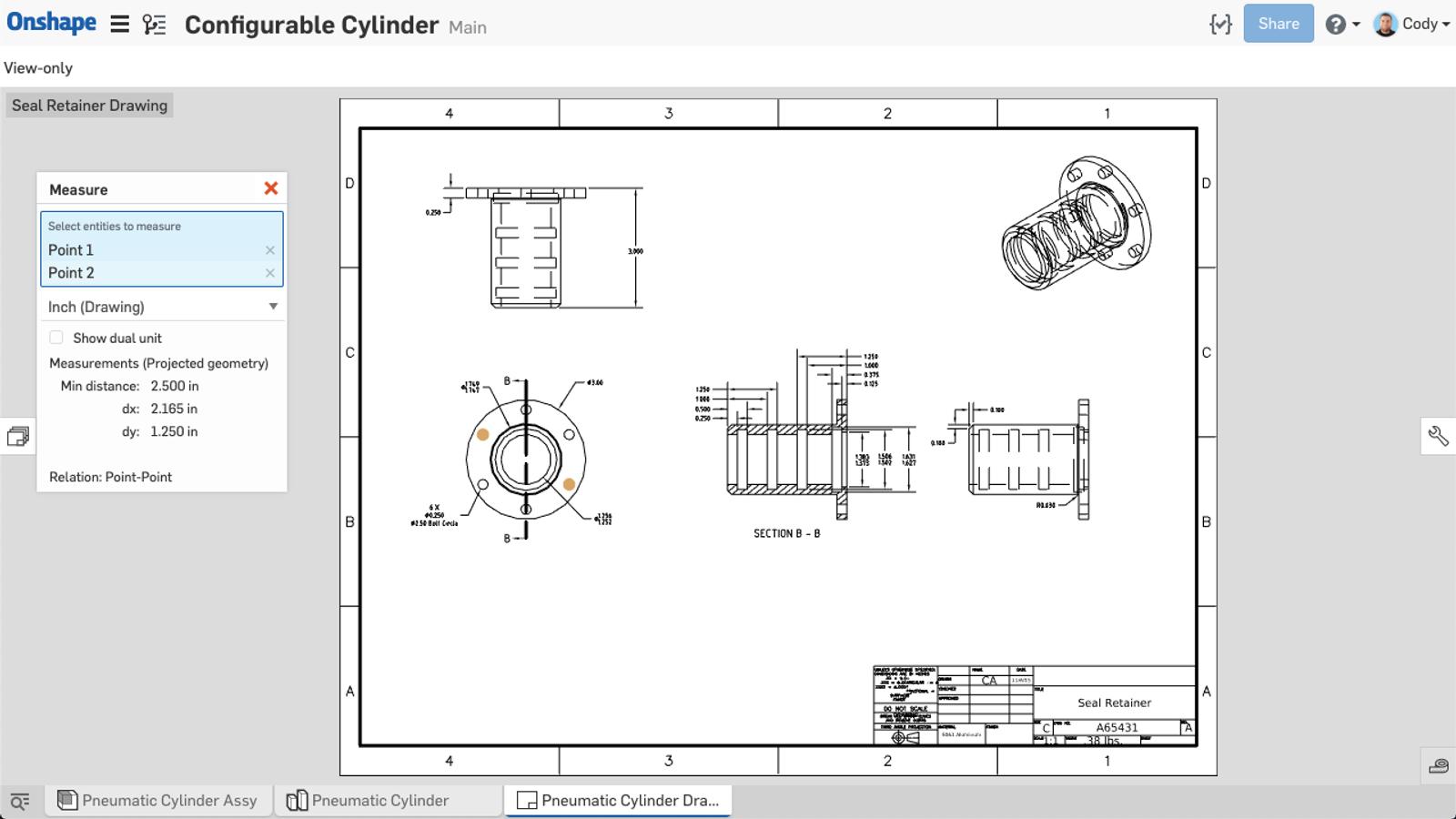 One final note regarding Measure in Onshape Drawings is that it also works for those who only have view-access to the drawing. This is great for those manufacturers or vendors who need a measurement and prefer to work in drawings.