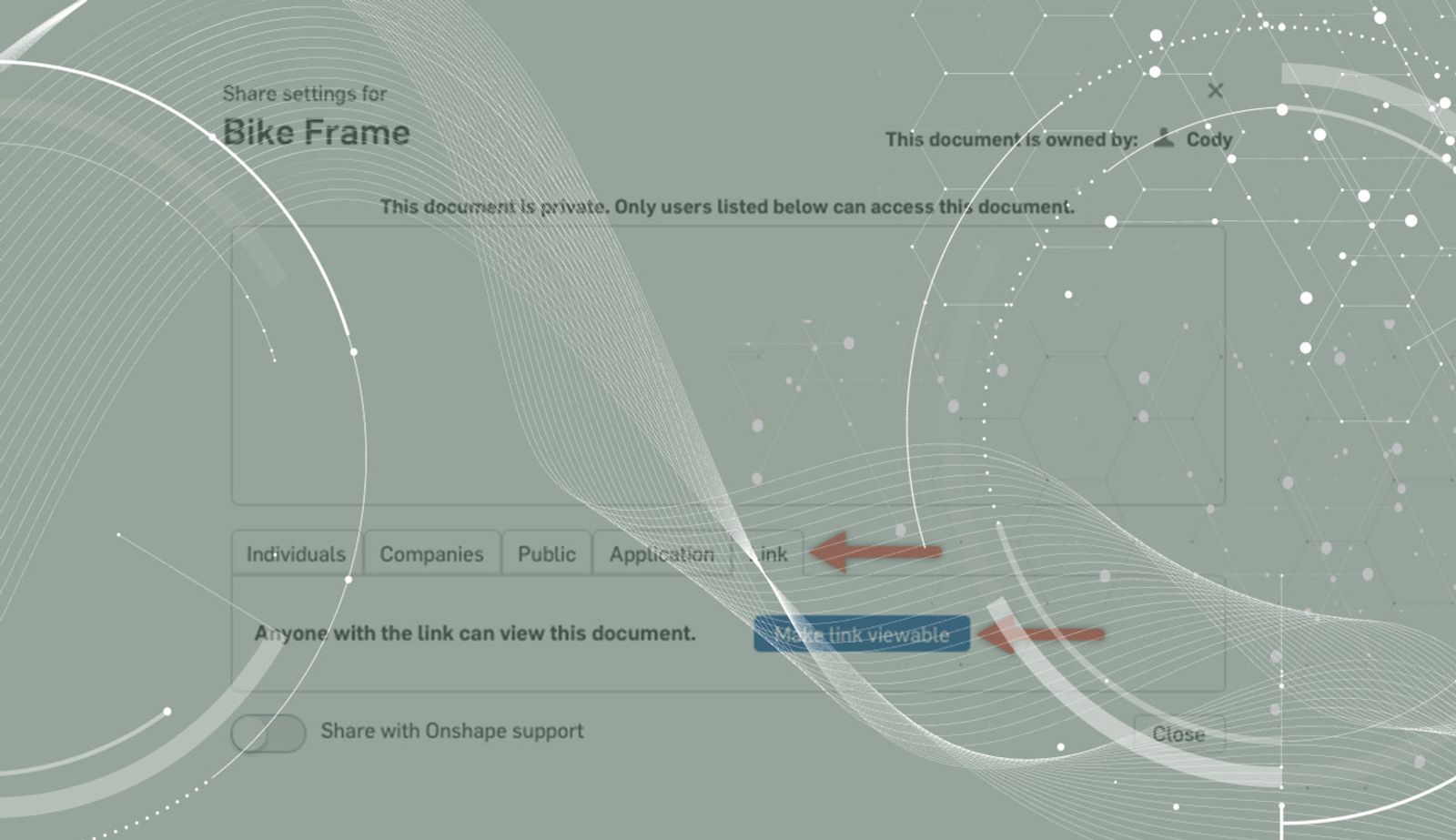 And remember, as with all Onshape share permissions, you remain in control of your data at all times, and can revoke permission to the link at any time by clicking the “x” in the Share dialog.