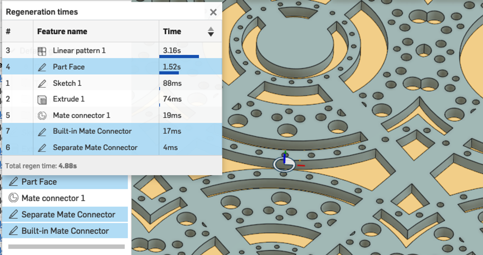 Looking at our complex design example below, there is a slight trade-off between creating a sketch on a separate Mate Connector or zero-offset plane versus using the built-in Mate Connector option in the sketch feature. This is still a significant improvement over the traditional approach of sketching directly on the face of a part.