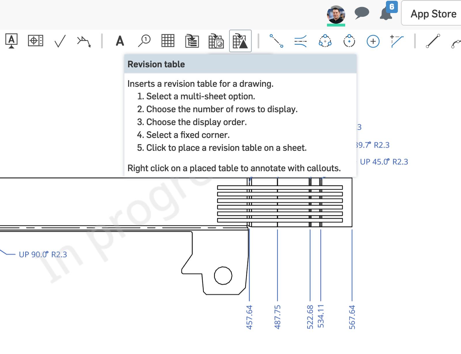 To add revision callouts, right-click on the table row that you would like to add callouts for and then place them onto the drawing.