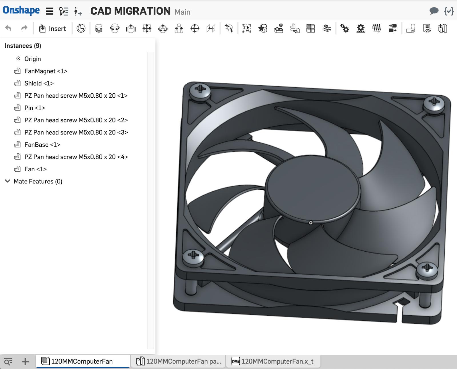 In this example, we are importing the top-level assembly of a company's product line into Onshape. The data is imported to maintain the assembly structure which creates a single Part Studio with all of the unique parts used.