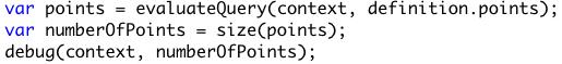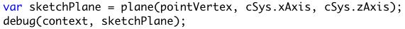 Here I’m debugging the “numberOfPoints” variable created by the size of the points query from the lines above it. These particular lines of code will return the number of points that the user clicks on. You can debug things like queries, vectors, lines, planes, and more.