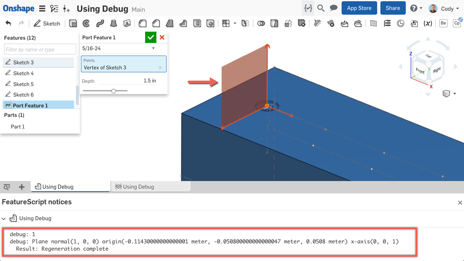 So the next time you find yourself stuck in FeatureScript, use debug to help you troubleshoot!
