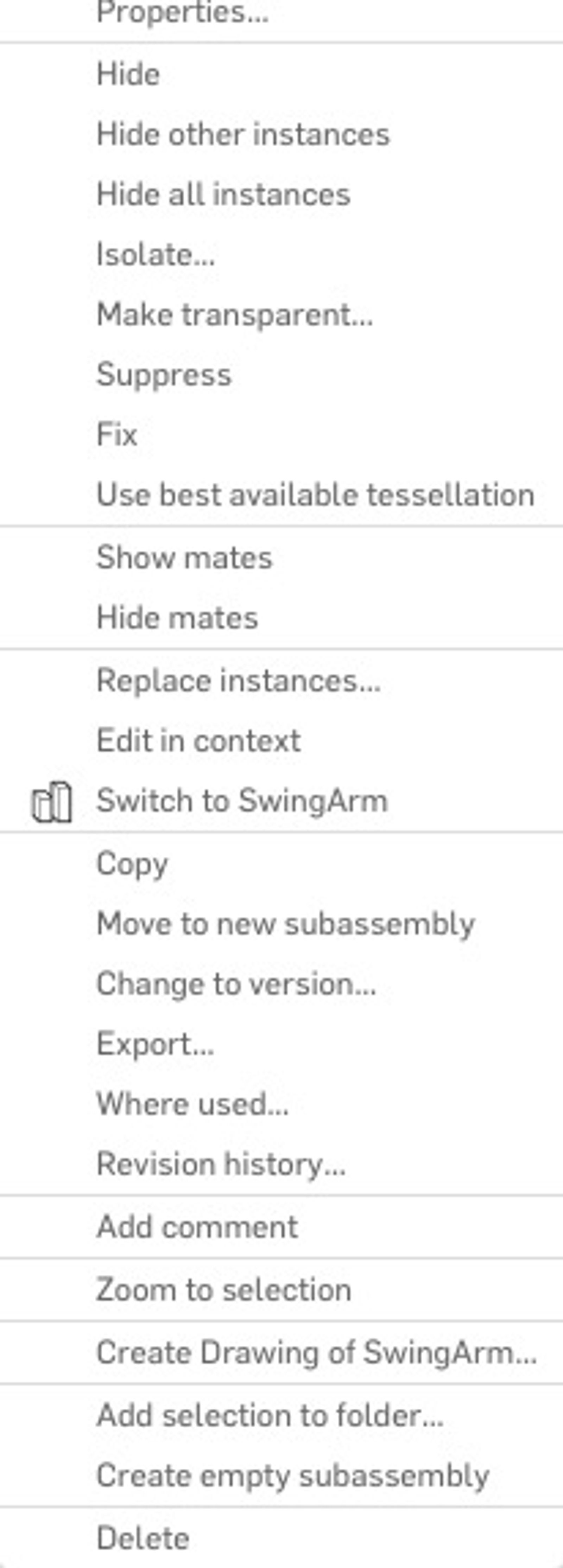 Utilizing the Replace Instance feature to replace an instance or multiple instances of the same part or subassembly within the Assembly tab helps to streamline your design workflow and reduces the need to manually insert and reapply the mates of components.