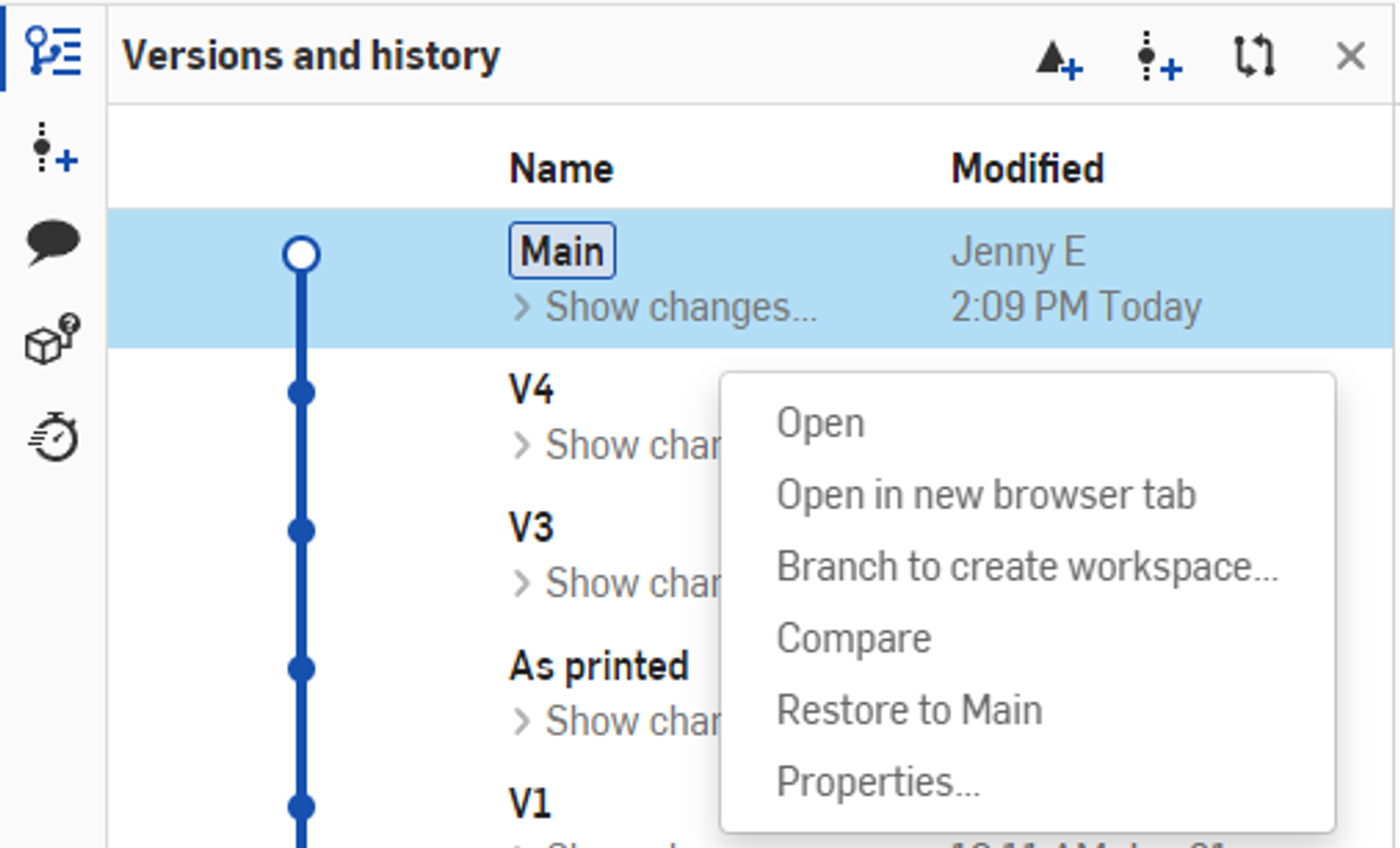 Users should consider using Branches when working in the same Part Studio to work more independently. Keep in mind that all changes made in a branch must be merged back – you can’t choose.