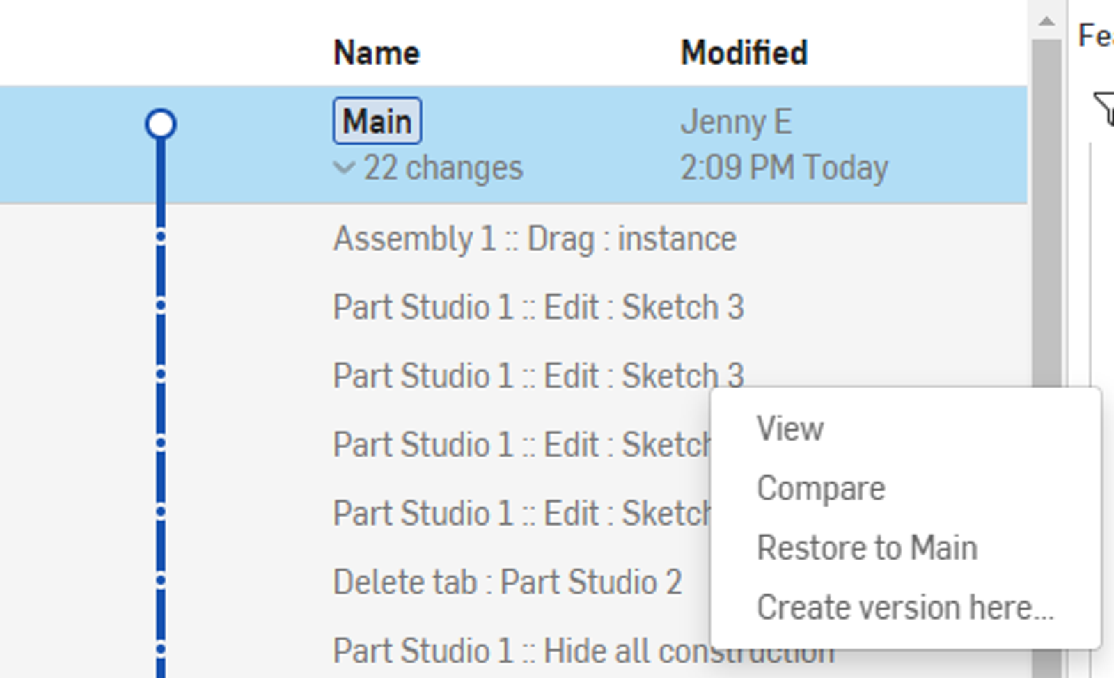 Finally – to put your mind at ease – all changes in Onshape are recorded in history so you can undo them at any time.