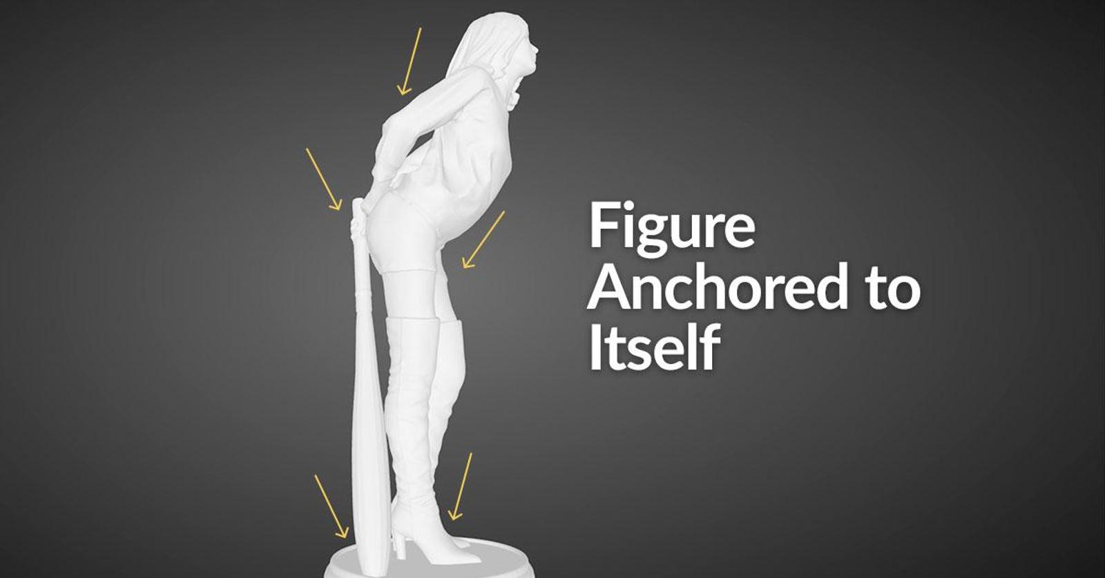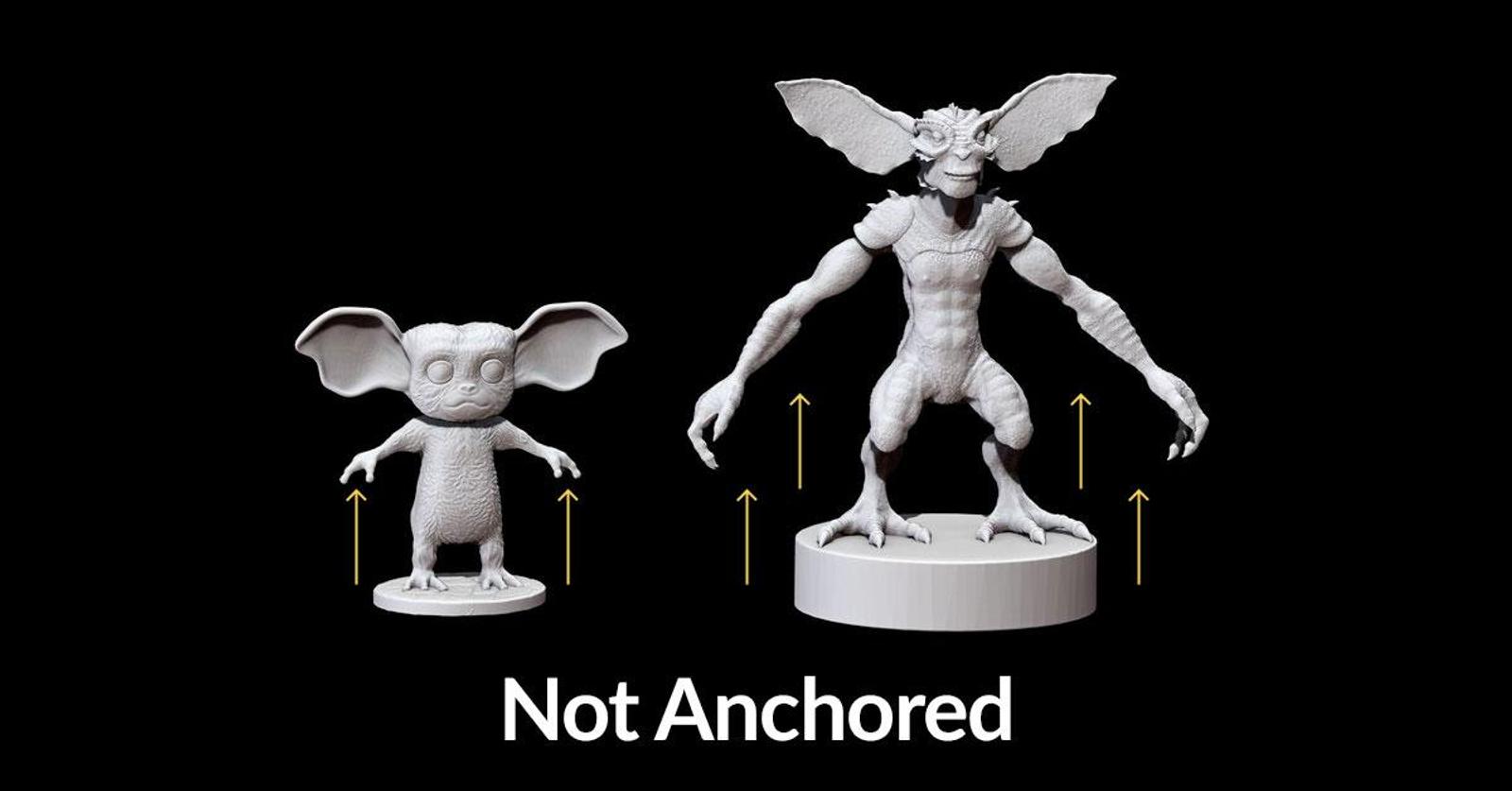 Anchor parts of your design that would go beyond 45 degrees and attach them to a different part of the model to avoid overhang. For example, in the first picture below you can see the arms are attached to the back. This is a good method to avoid overhang and allows you to print the design as a whole whereas the model below have their arms straight out which will create some problems when printing.